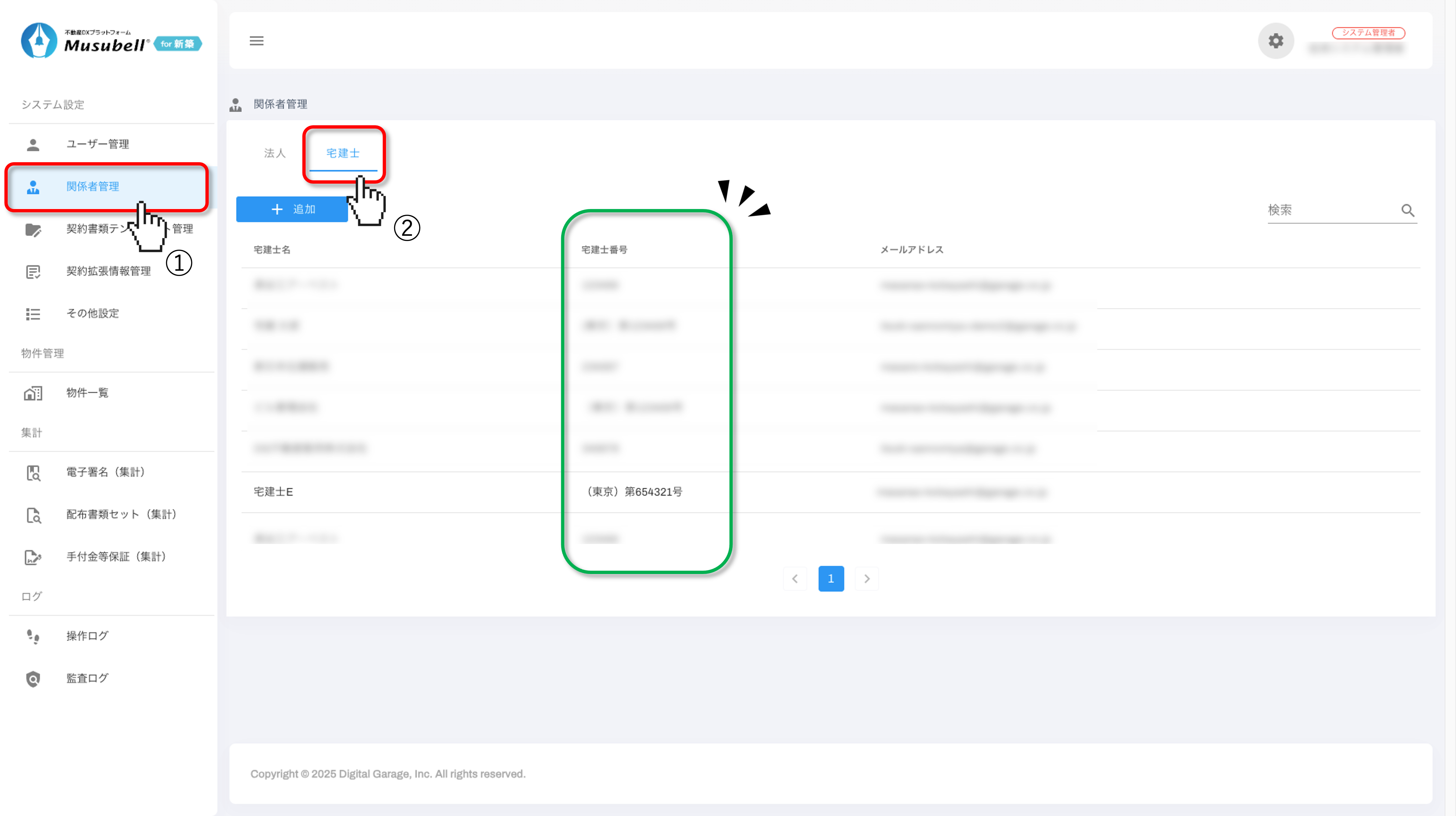 「①関係者管理」→「②宅建士」の順にクリックします。