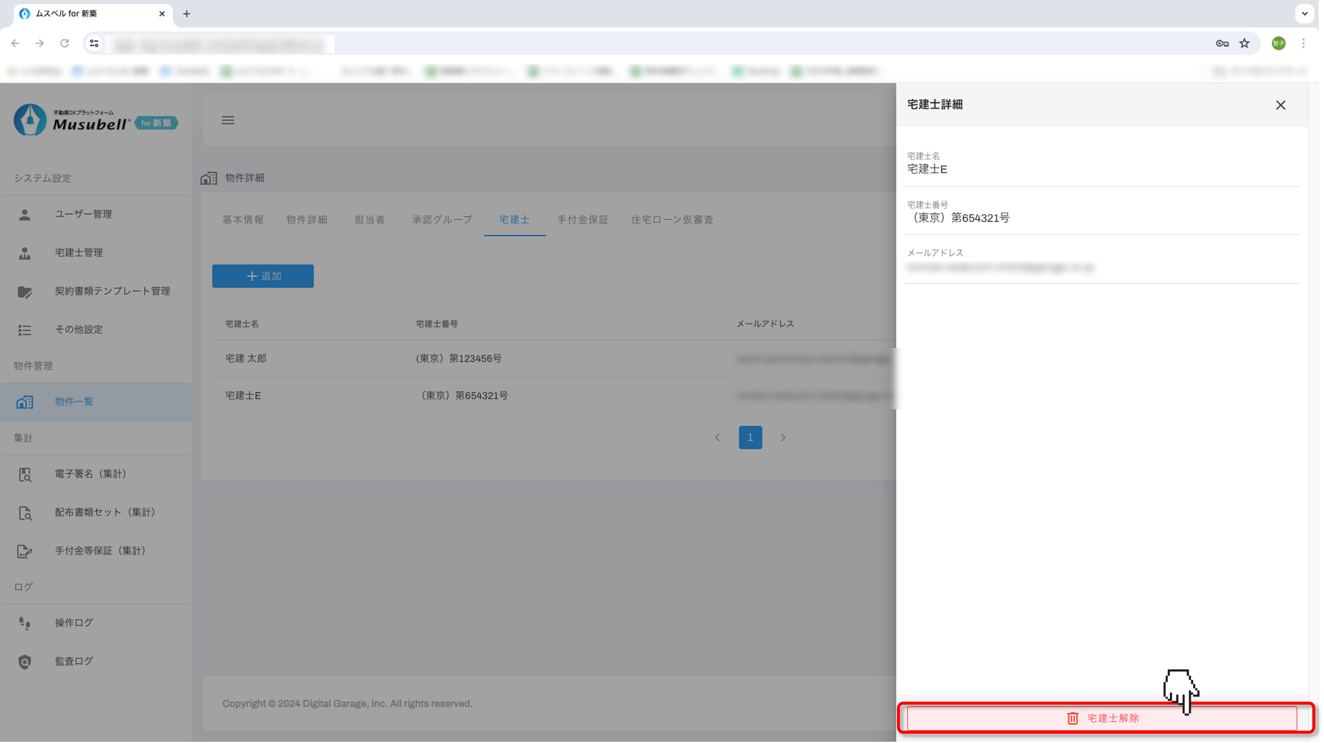 ② 物件の宅建士を削除する