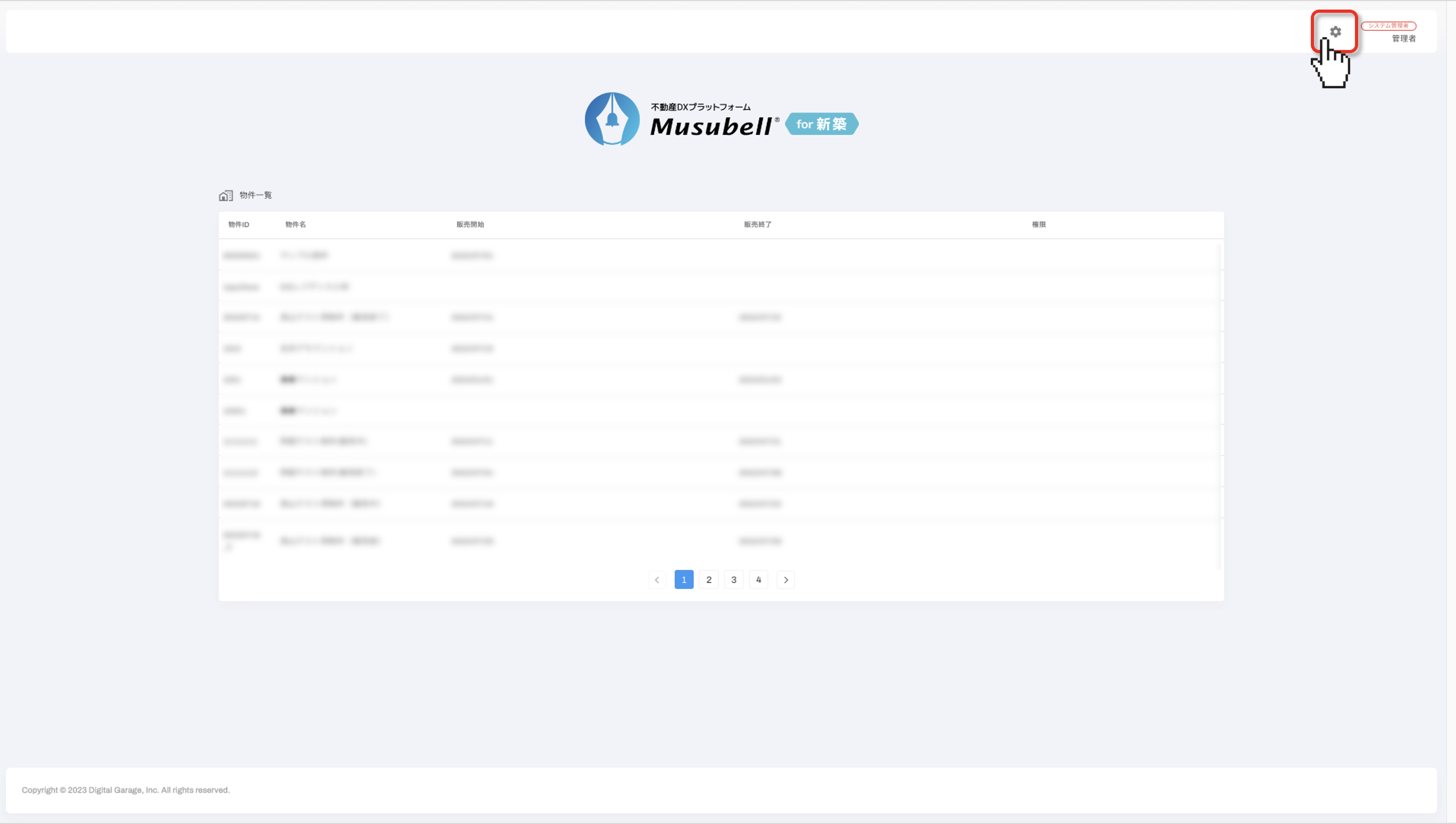 トップ画面右上の設定マーク[歯車アイコン]をクリックします。