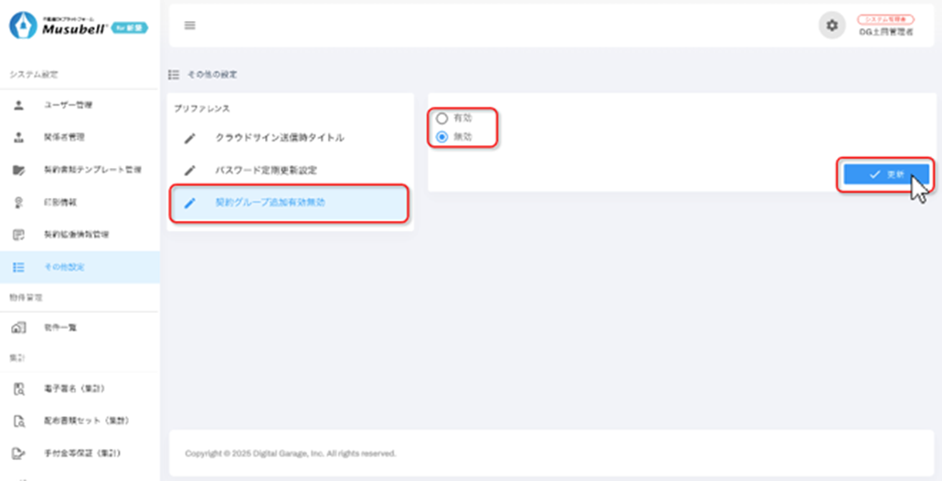 ① 「契約グループ追加有効無効」のタブをクリックします。