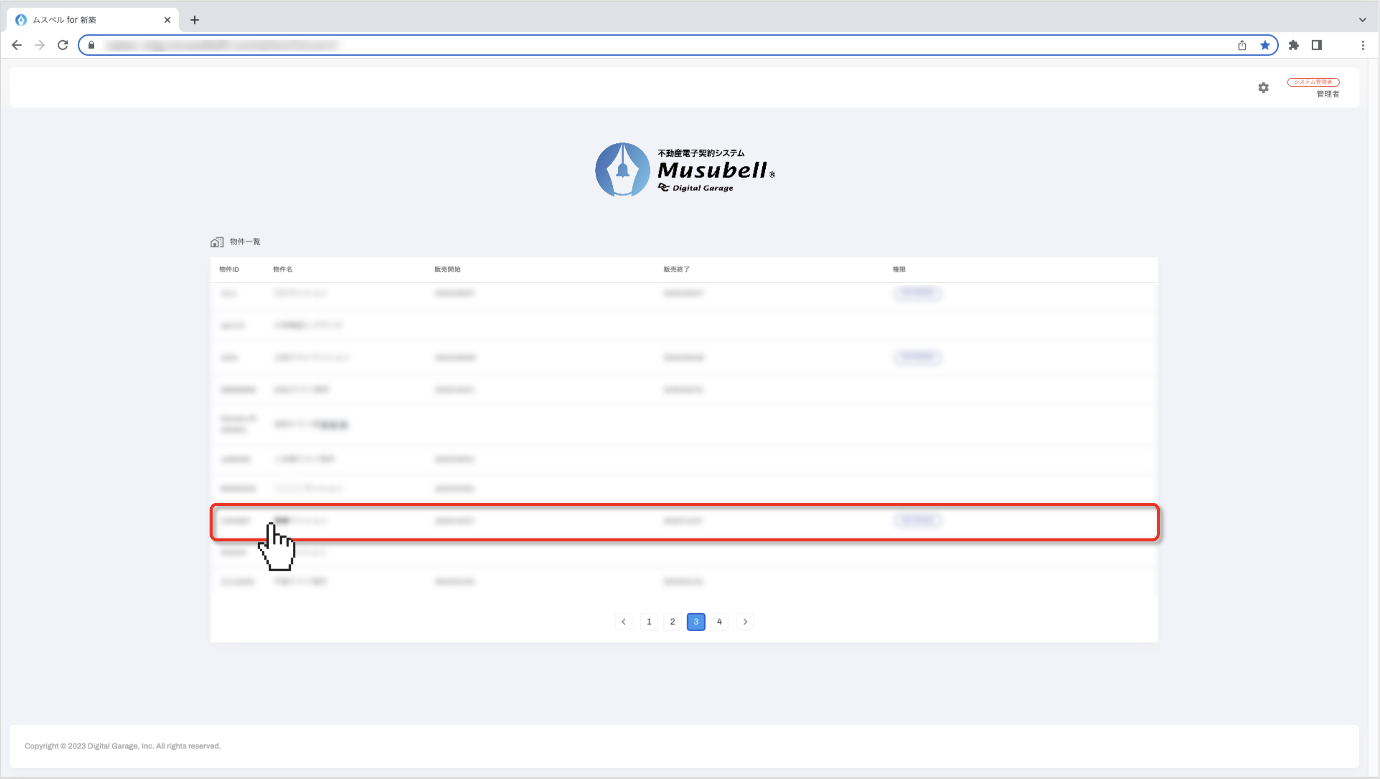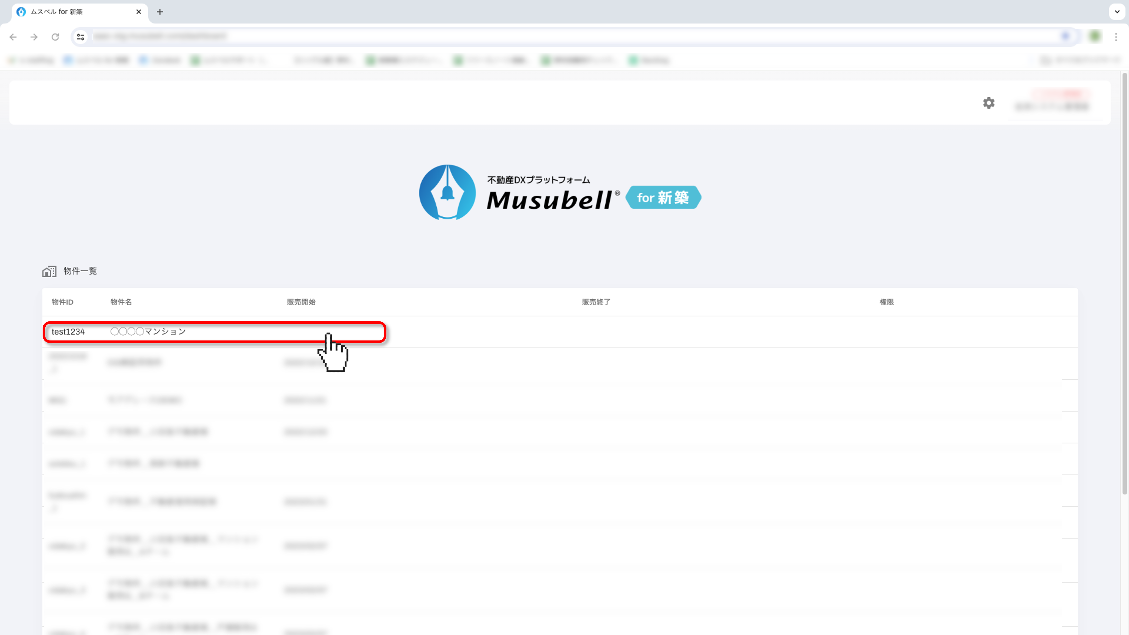 [物件一覧]より、変更したい契約者様がいる物件をクリックします。