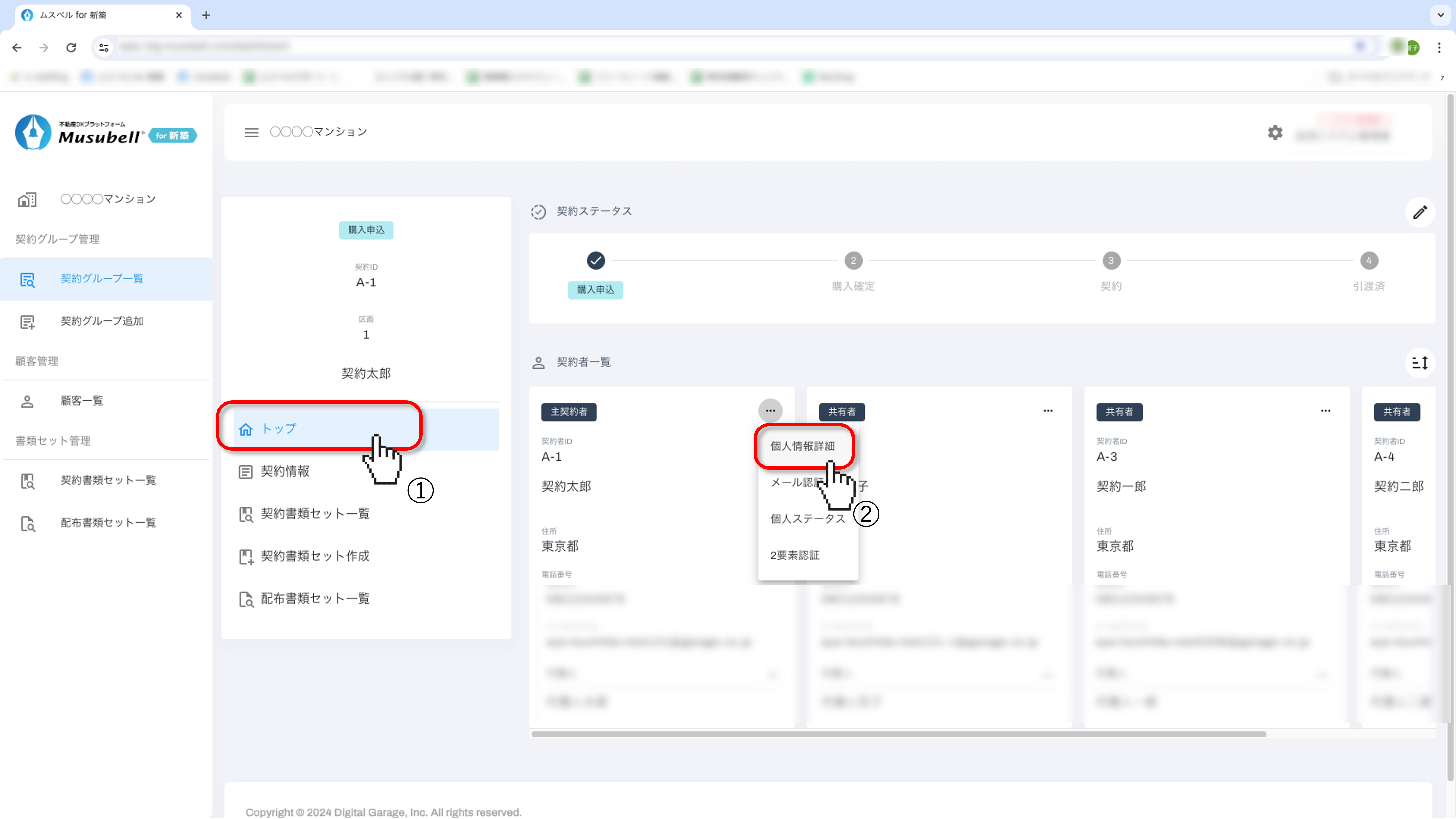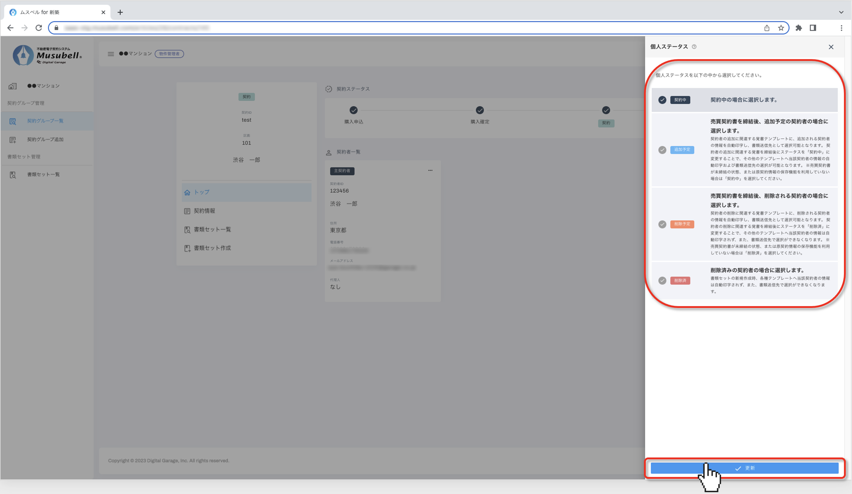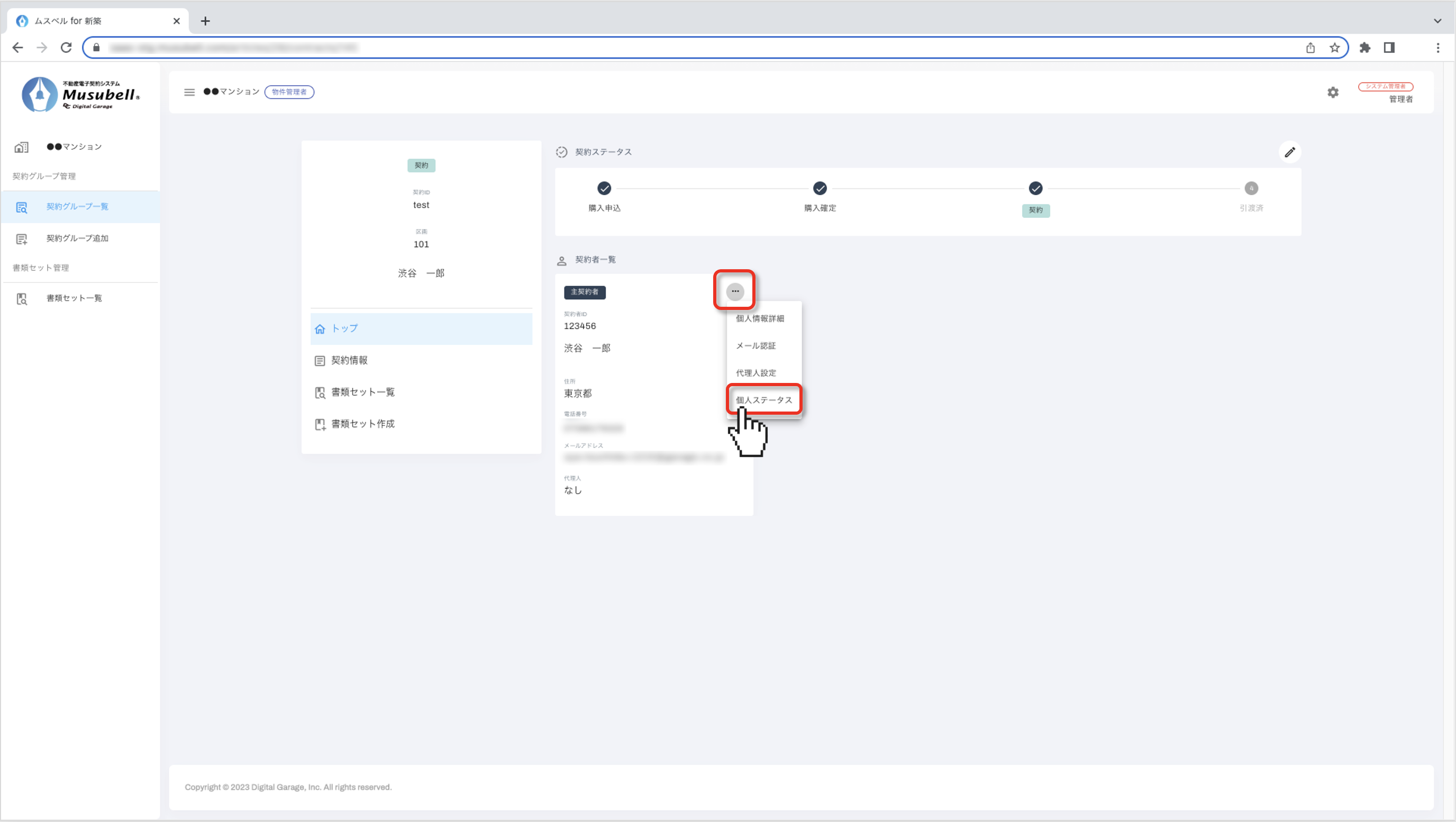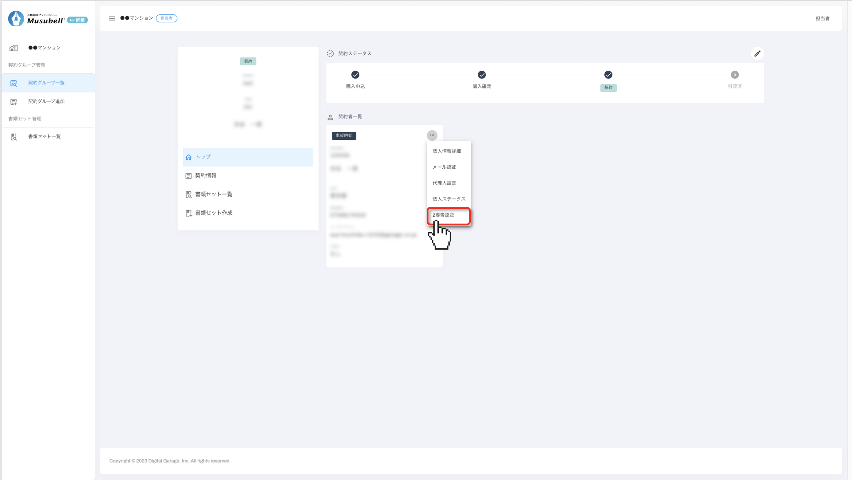 Musubellにおける契約者様の個人情報の変更、2要素認証リセット、個人ステータス変更、代理人設定などの顧客管理操作をご案内します。