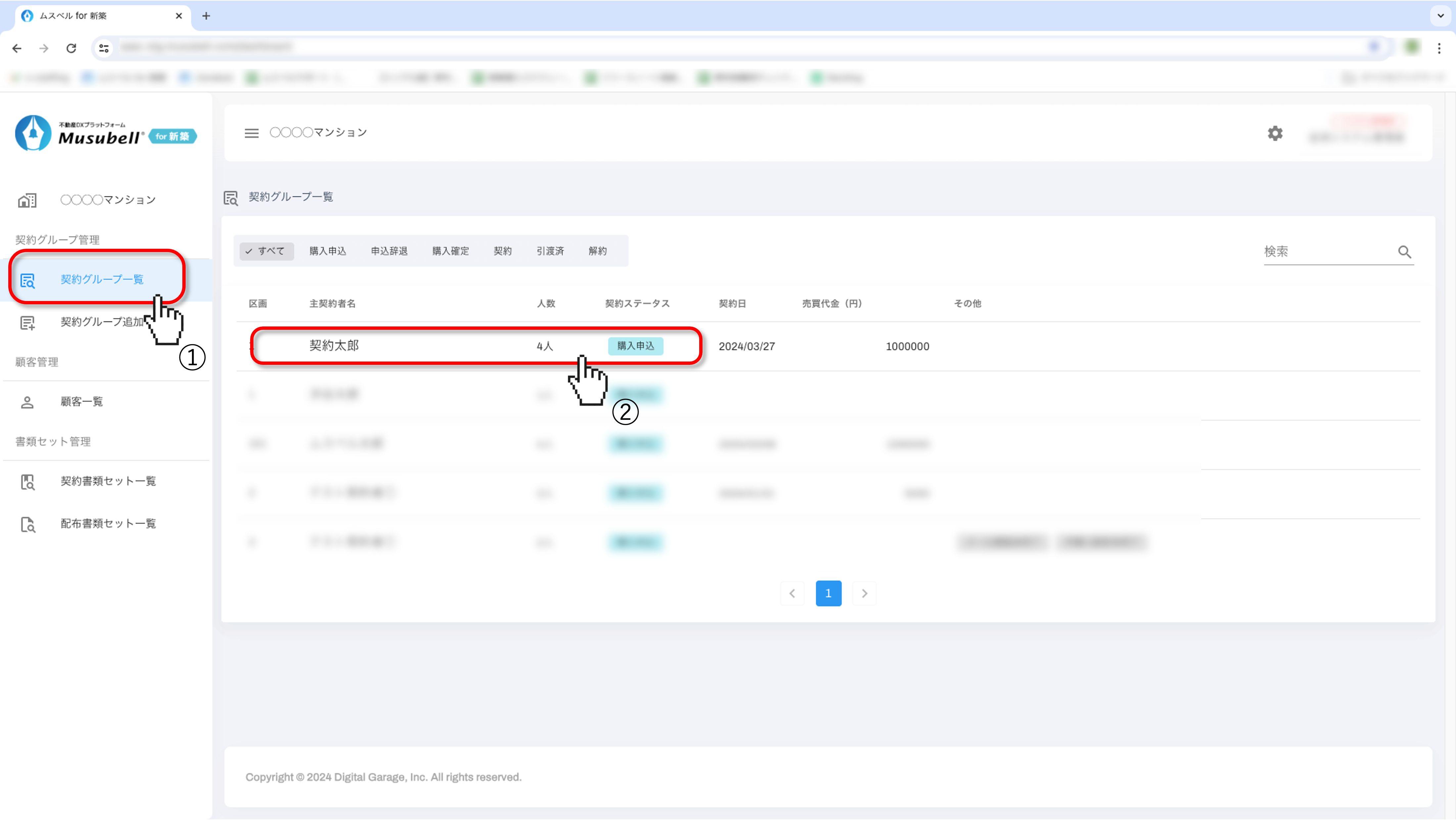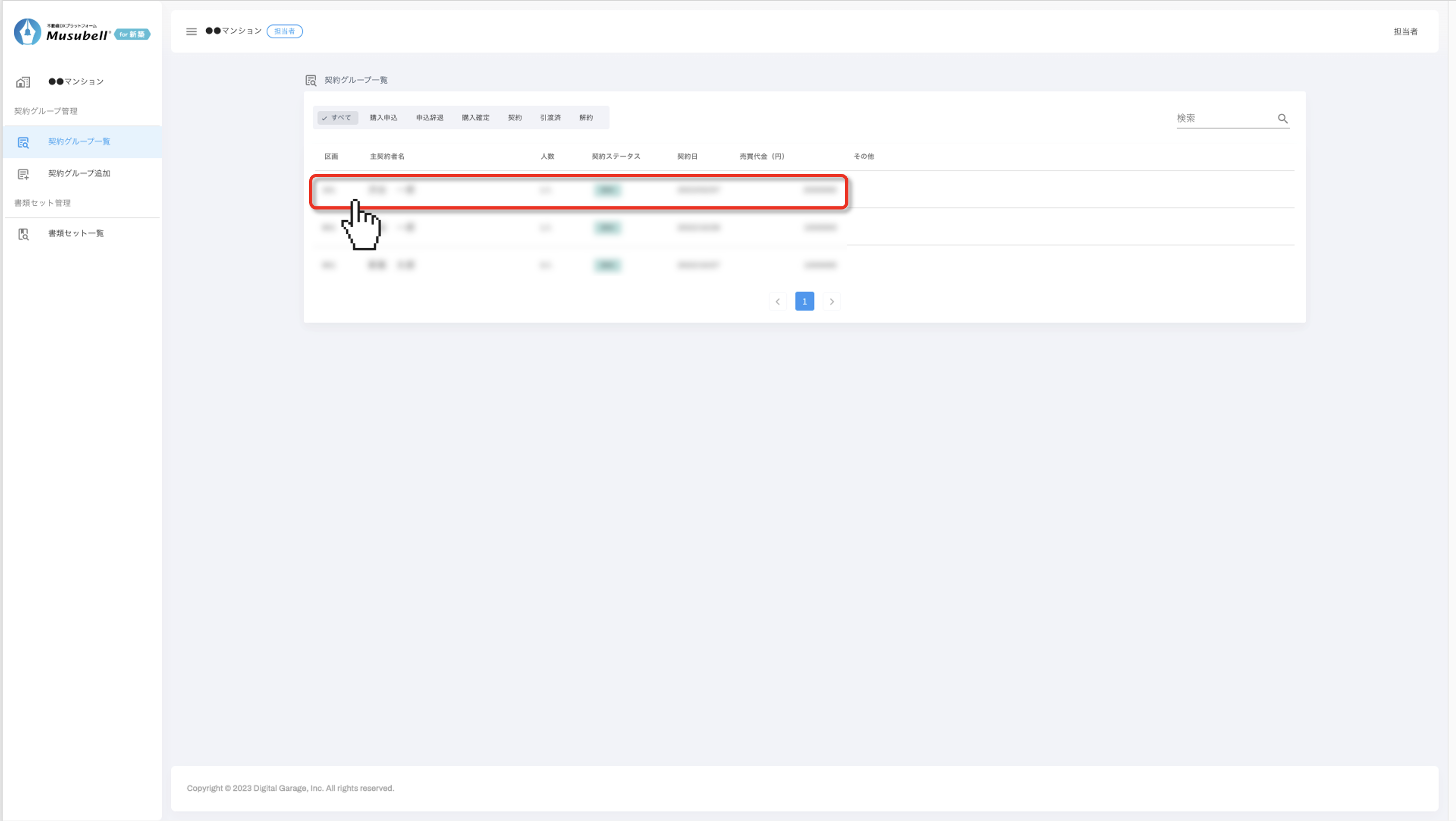 契約グループ一覧から、リセットしたい契約者様を選択します。