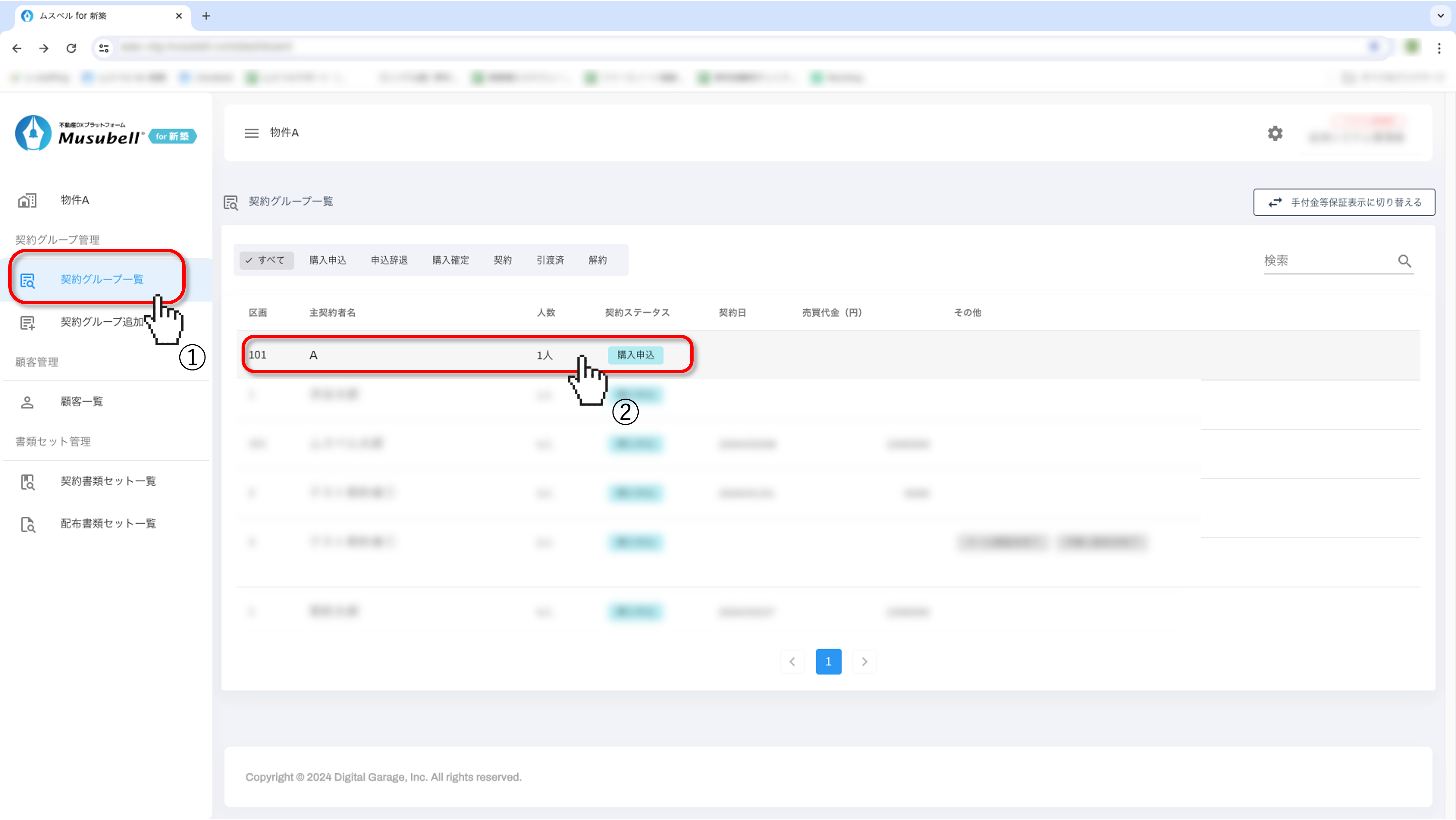 「契約グループ一覧」から、該当の契約者名をクリックします。