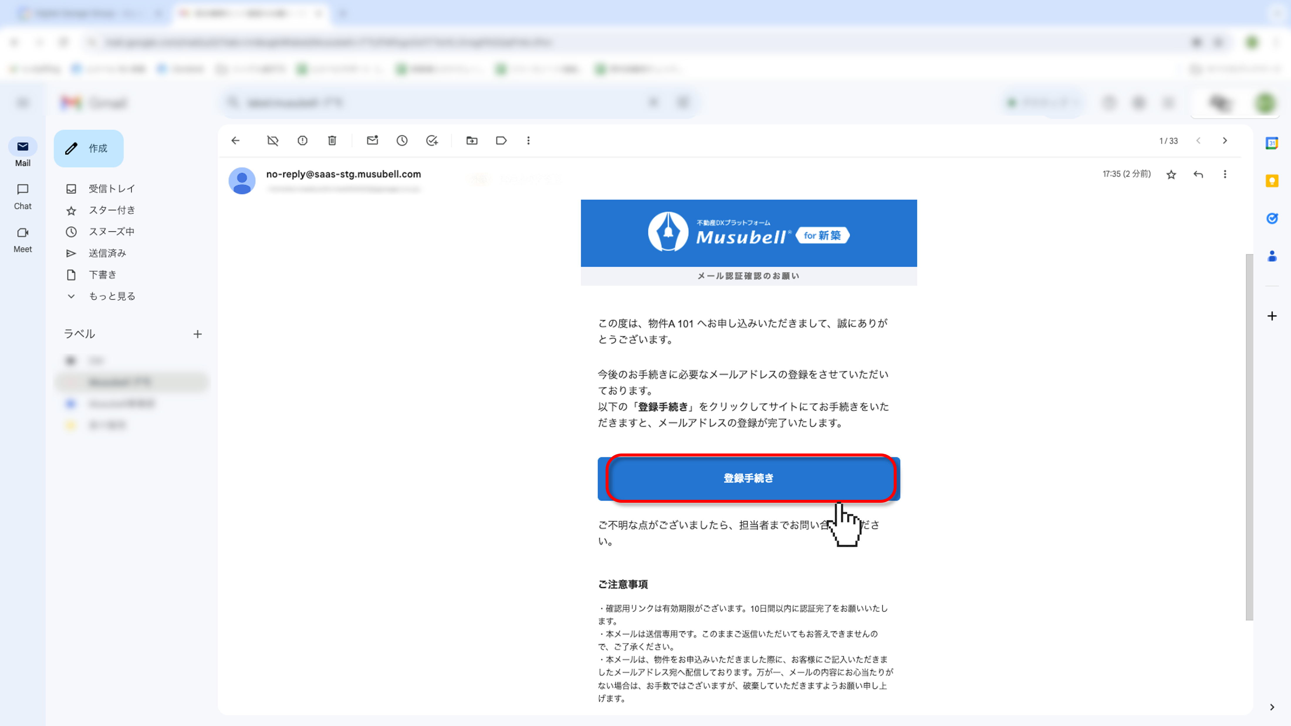 契約者様には通知メールが届きます。「登録手続き」から再度メール認証をしていただくようご案内ください。