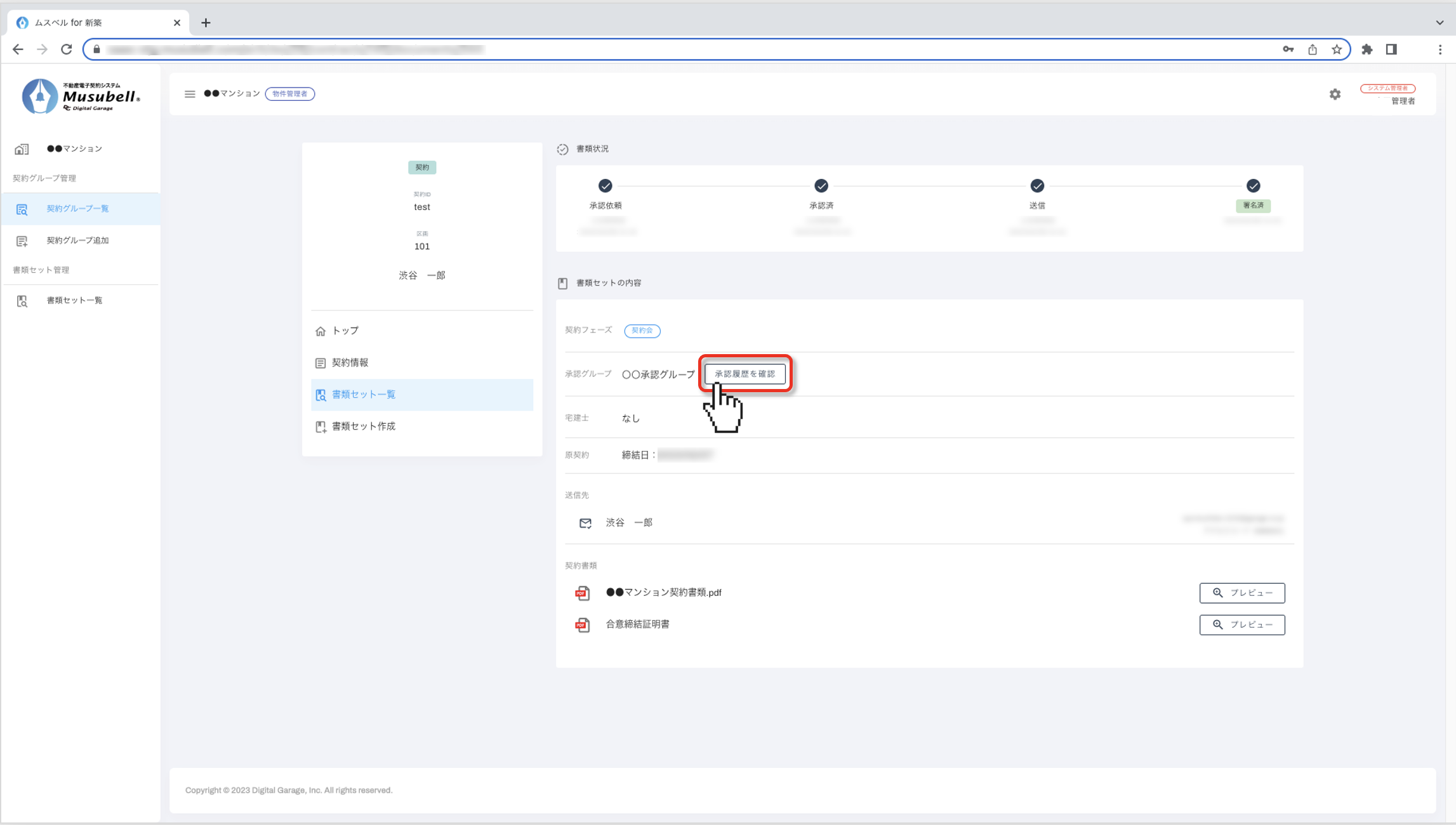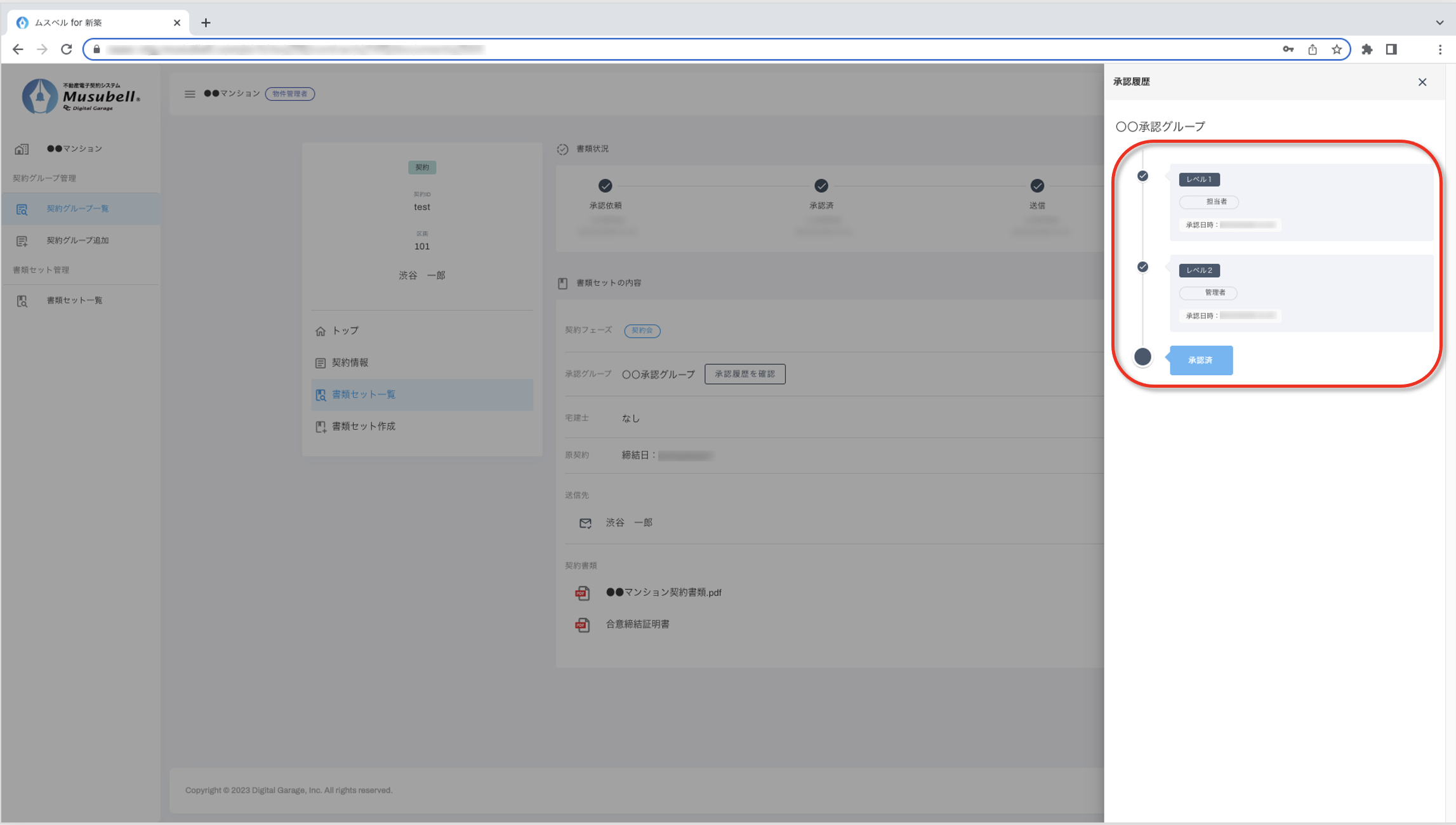 Musubellで作成した書類セットの承認者や、承認が完了した日時などの履歴を確認する手順をご案内します。