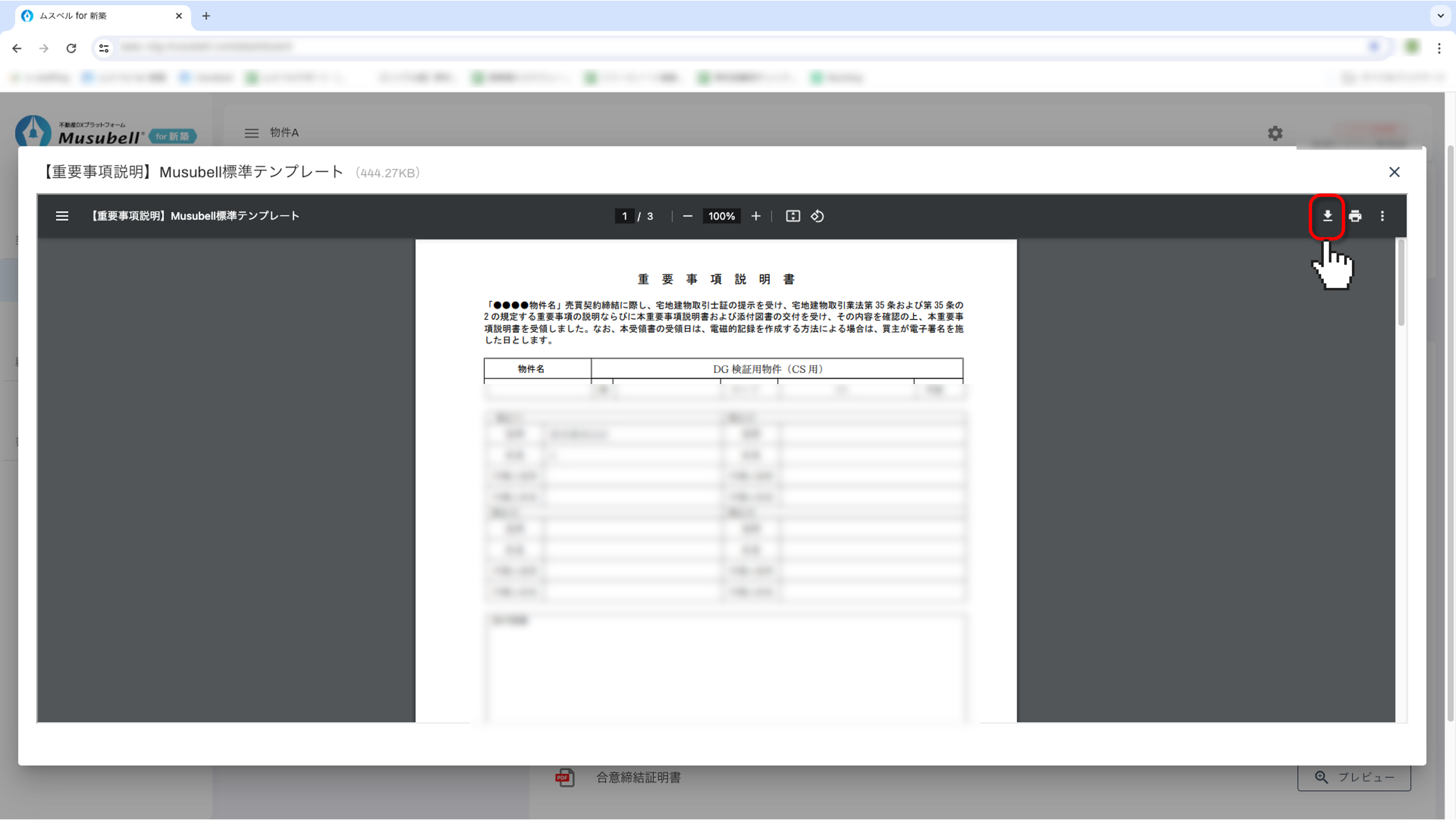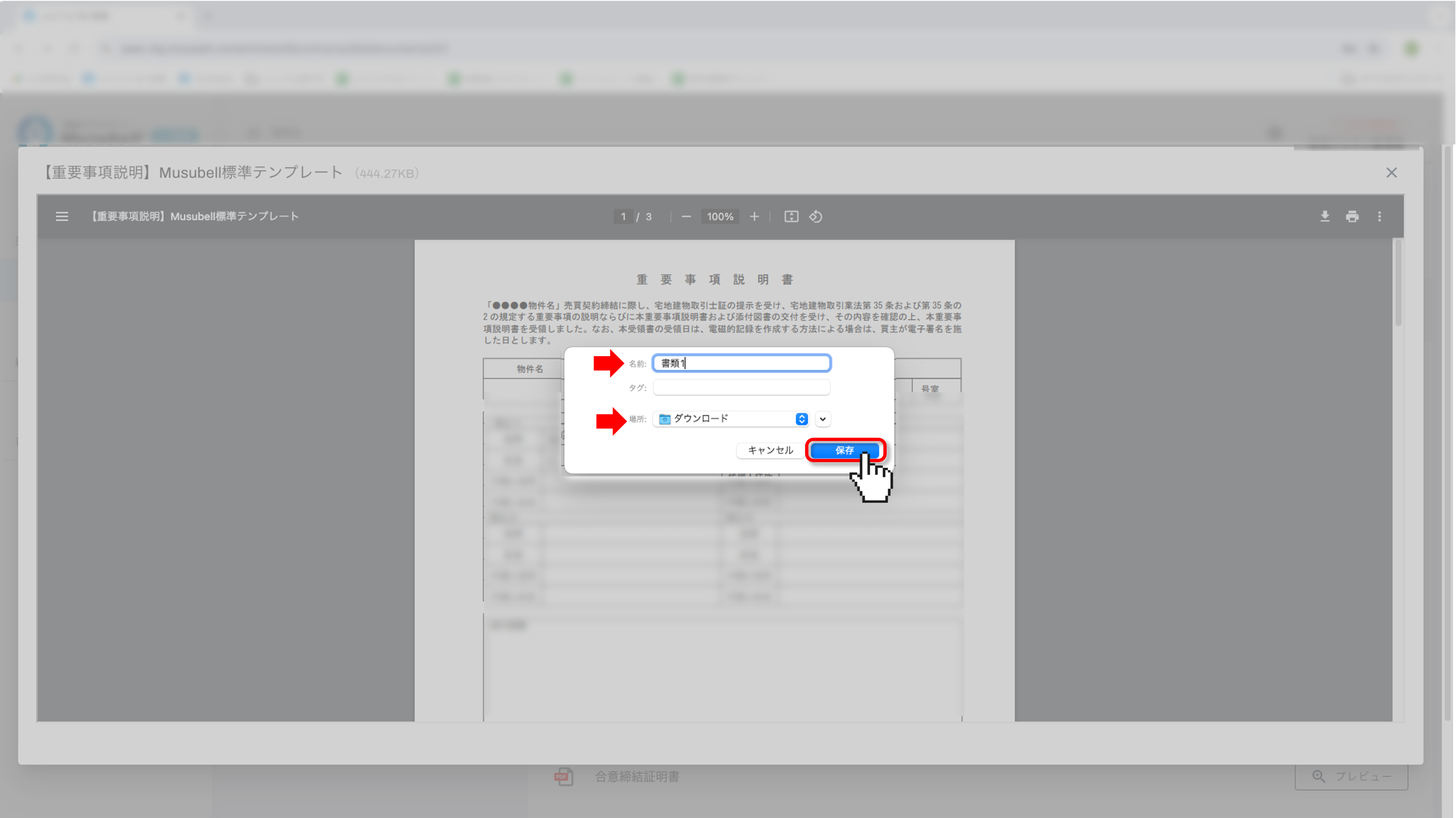 Musubellで締結が完了した契約書類を、パソコンにPDF形式でダウンロードする手順をご案内します。