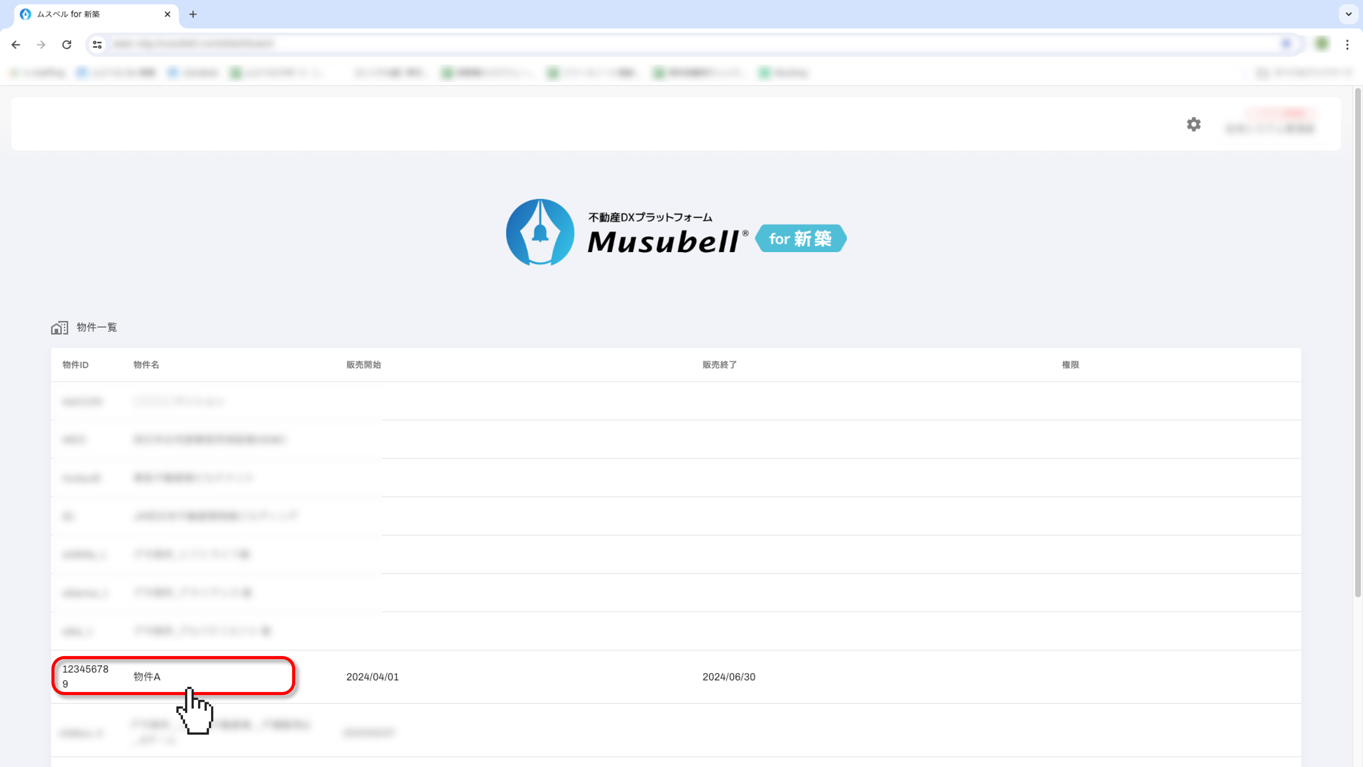 トップ画面で、ダウンロードしたい書類がある物件をクリックします。