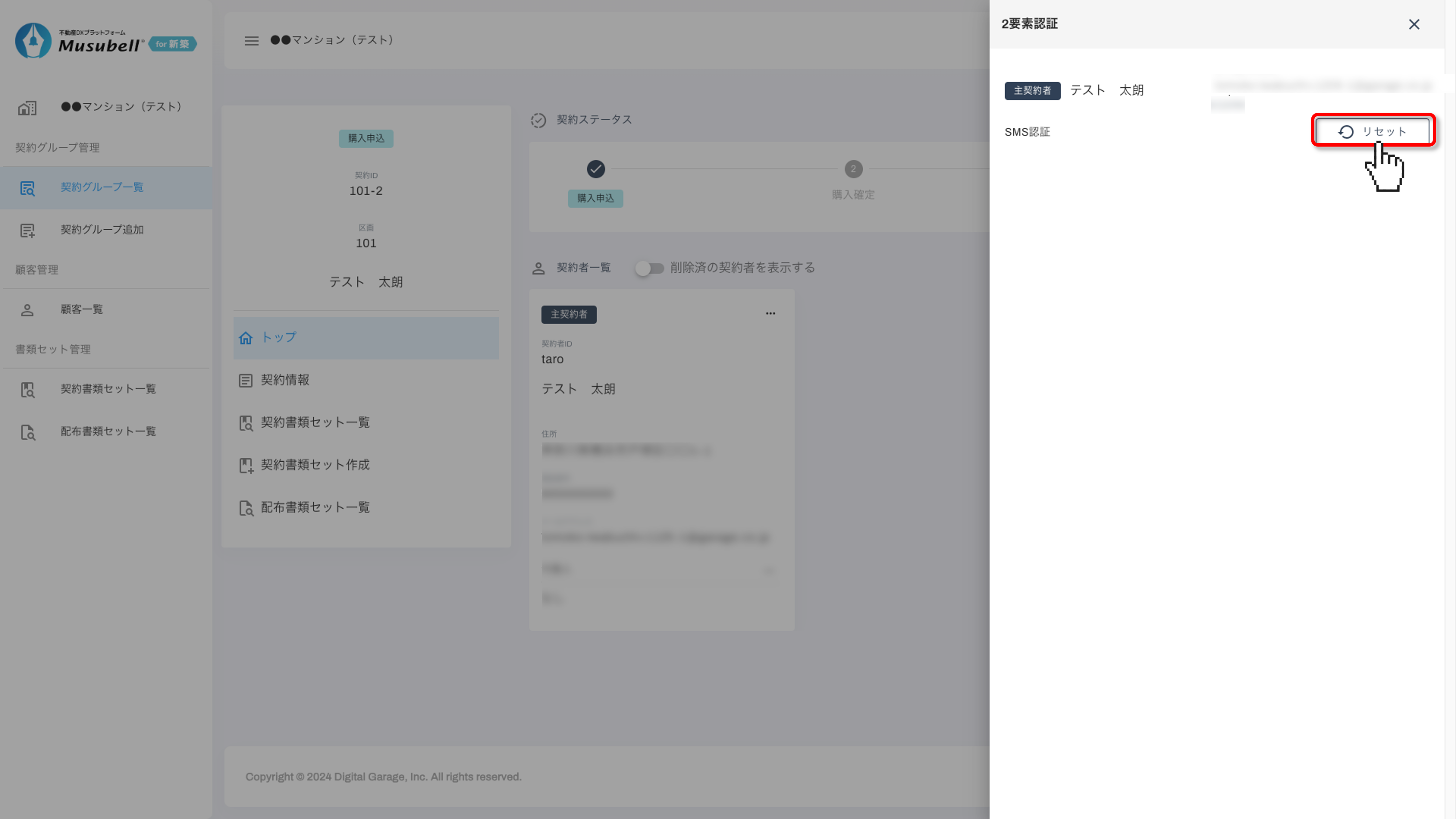トップ画面 > 物件を選択 > 「契約グループ一覧」の順に進み、該当の契約者名をクリックします。