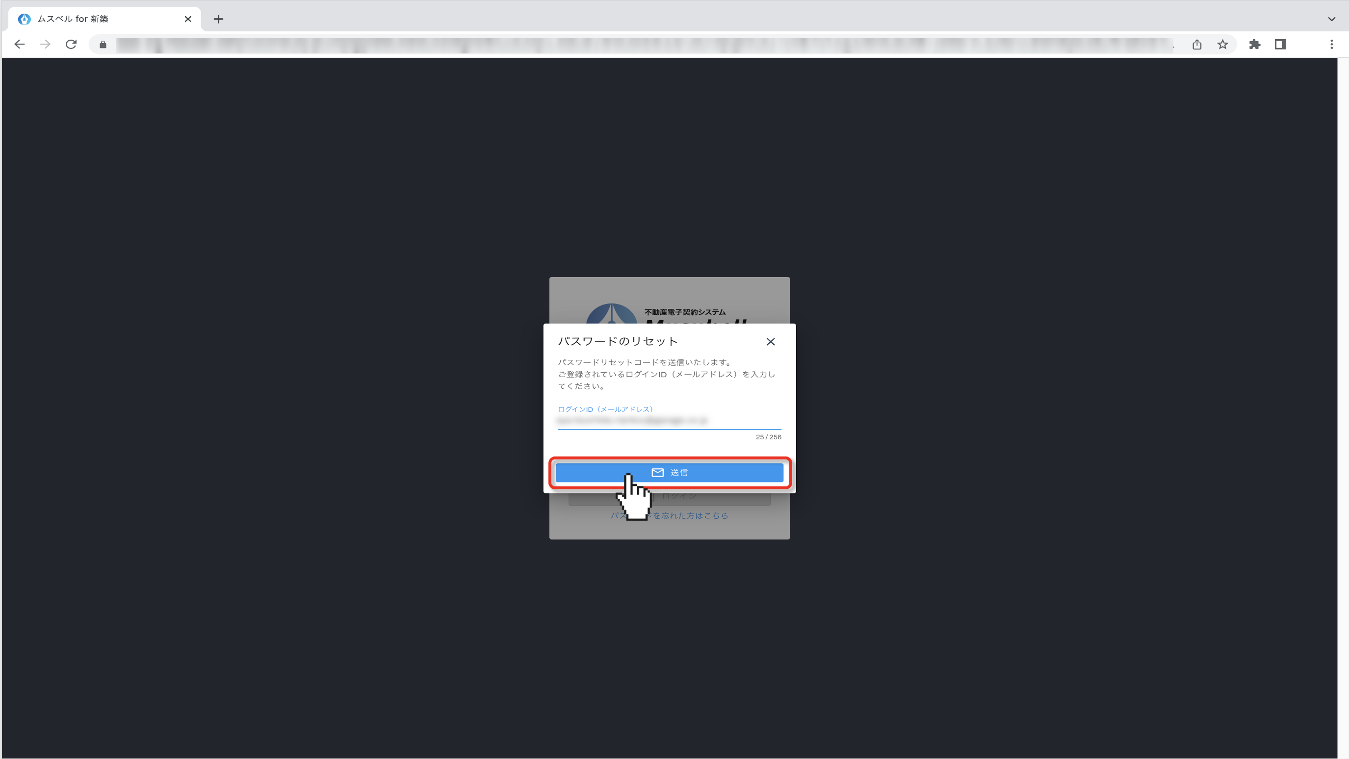 ログインID(メールアドレス)を入力し、「送信」をクリックします。