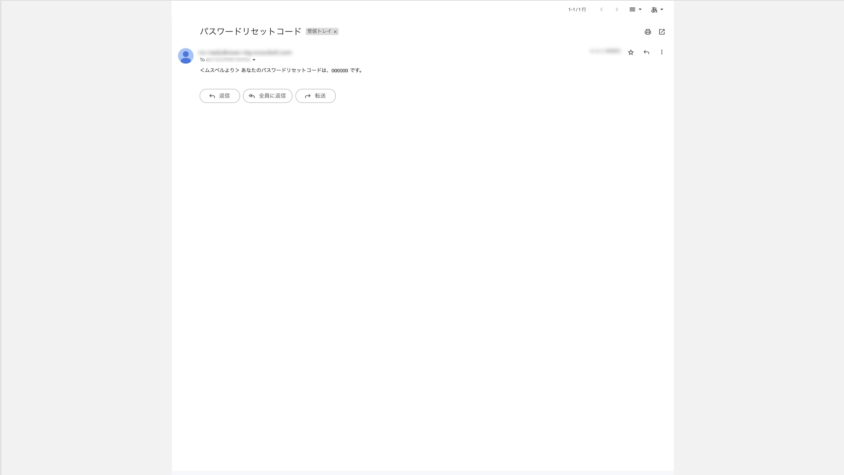 メールにてパスワードリセットコードが届きます。