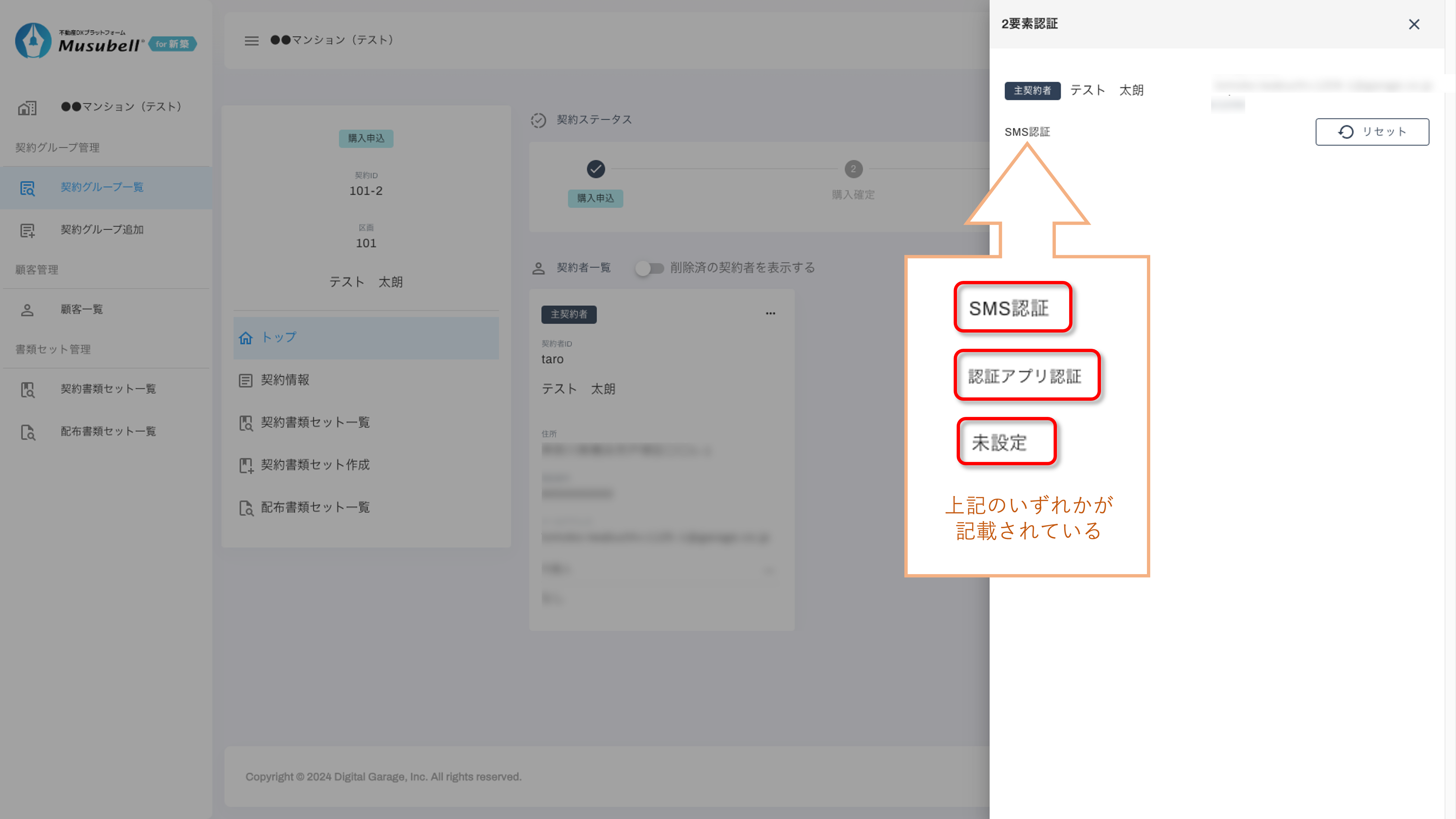 【契約者の2要素認証設定の確認方法】