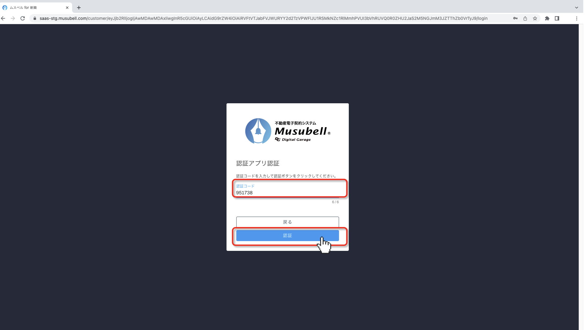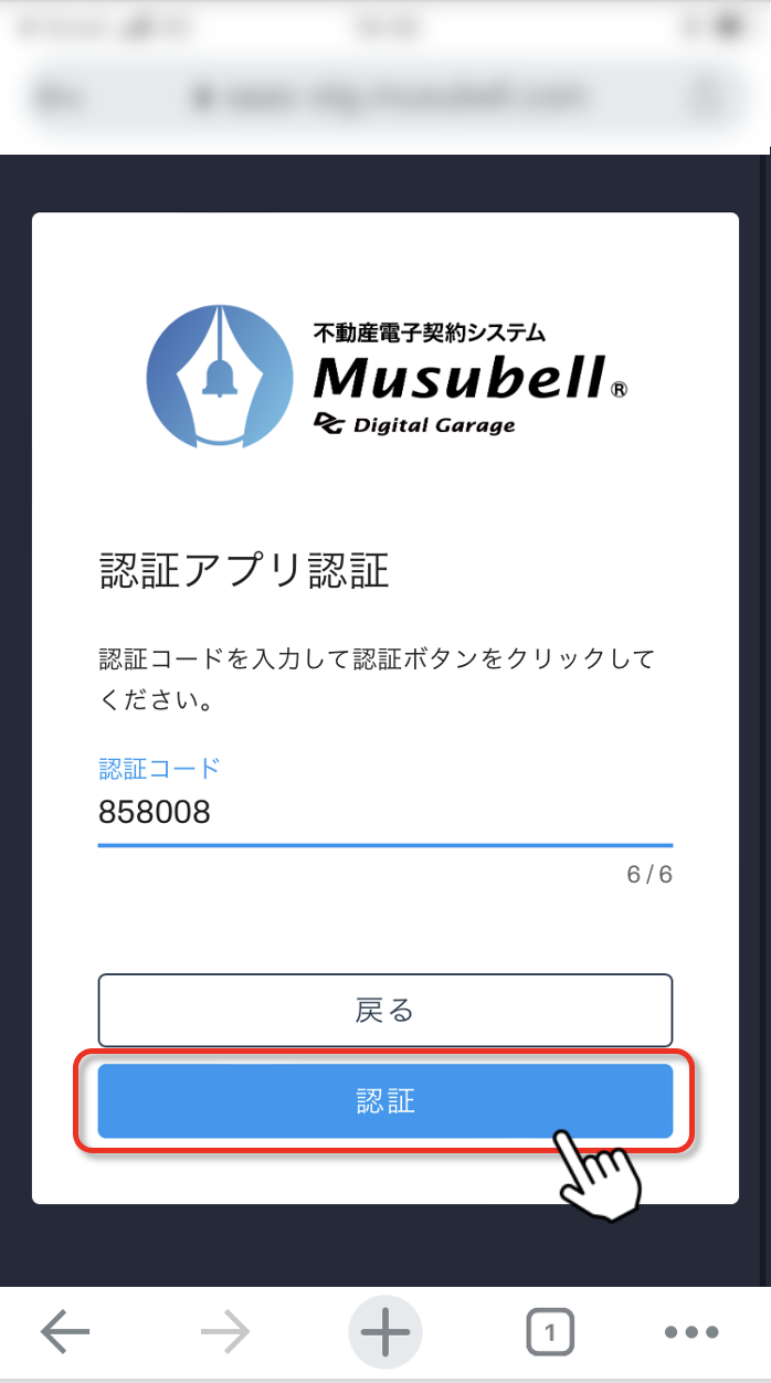 届いた2要素認証の認証コードを入力します。