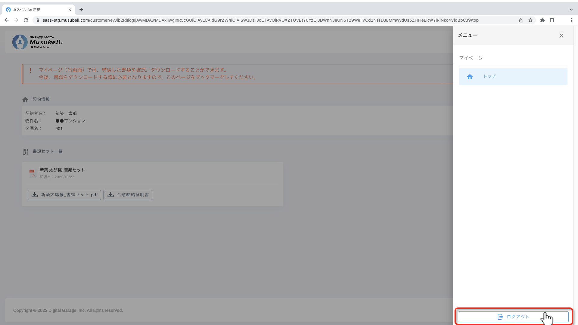 [ログアウト]をクリックすると、ログアウトが完了します。