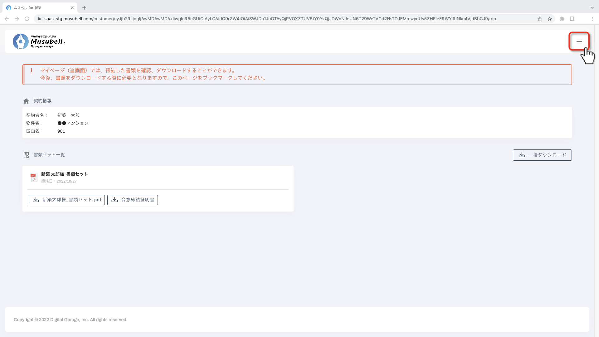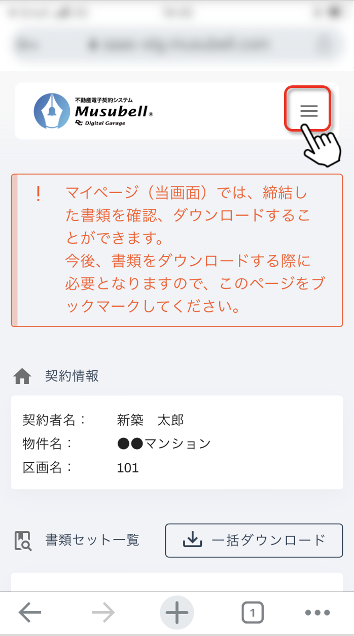 マイページ右上の「3本線メニューボタン」をクリックします。