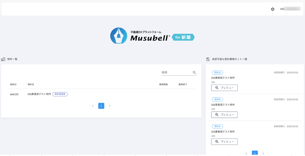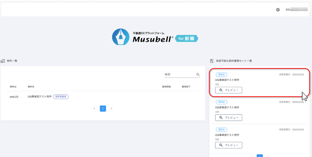 物件一覧の右側に、承認対象の契約書類セットが一覧表示されます。