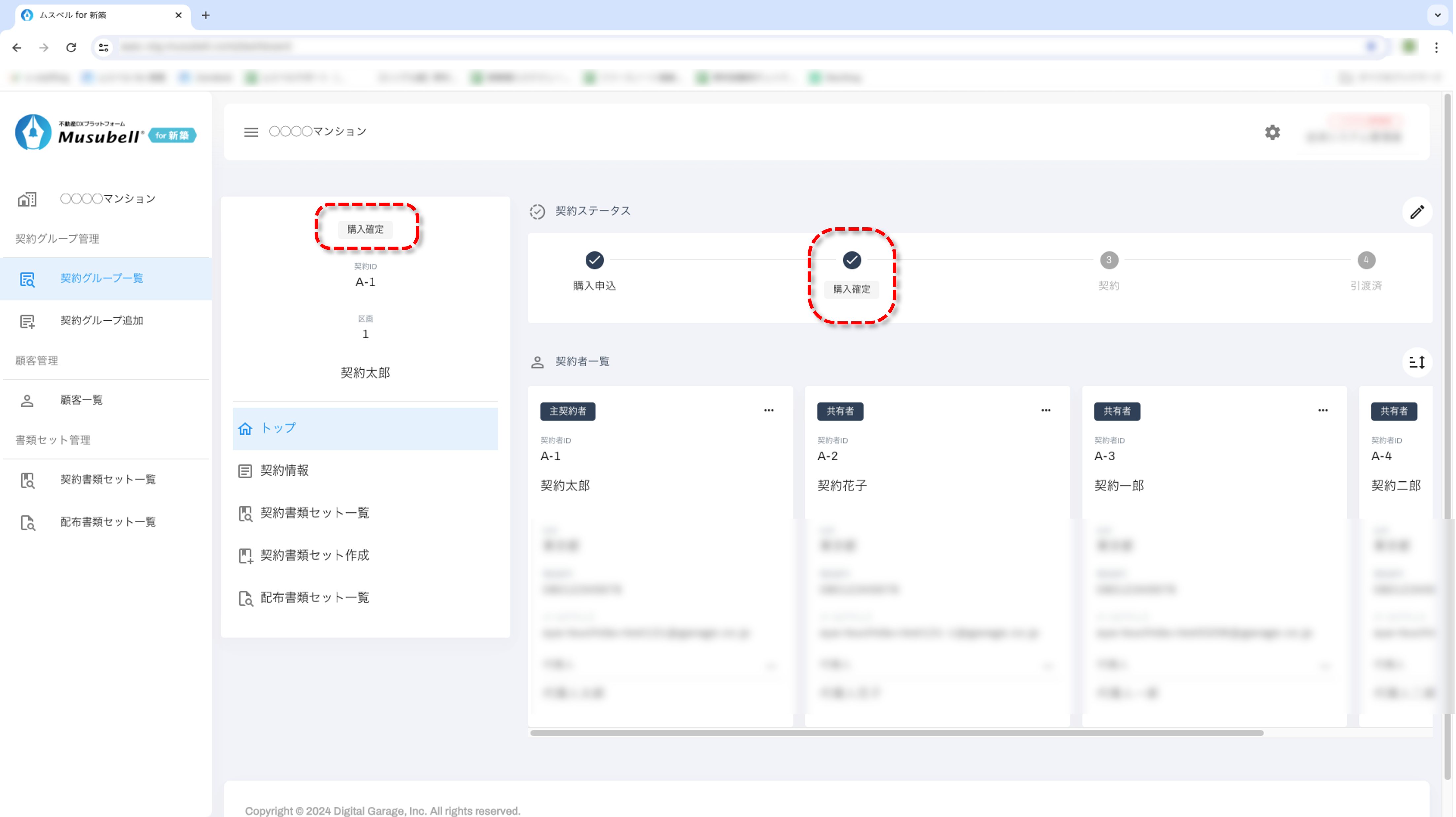 トップ画面で、契約ステータスを変更したい物件を選択します。