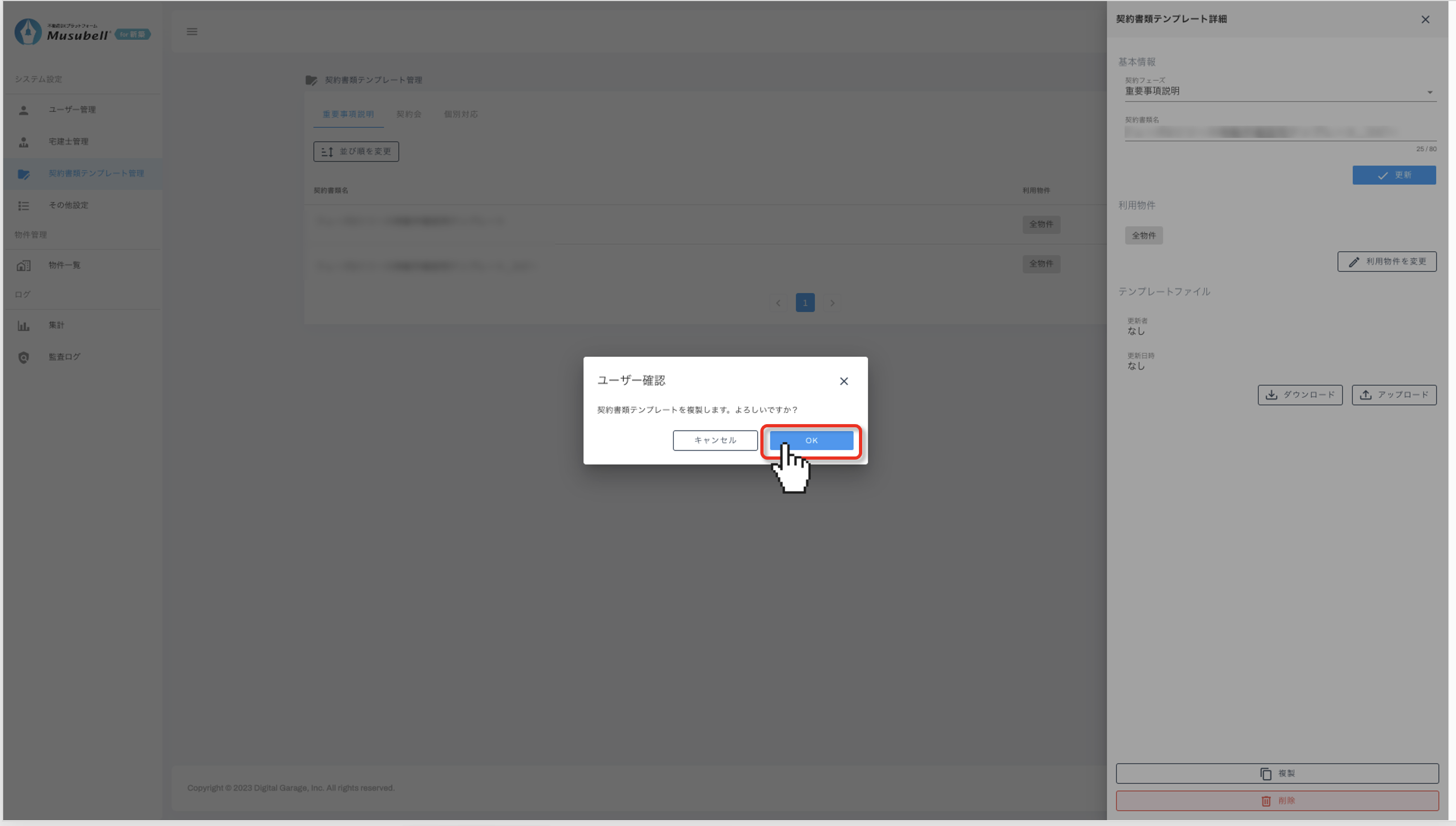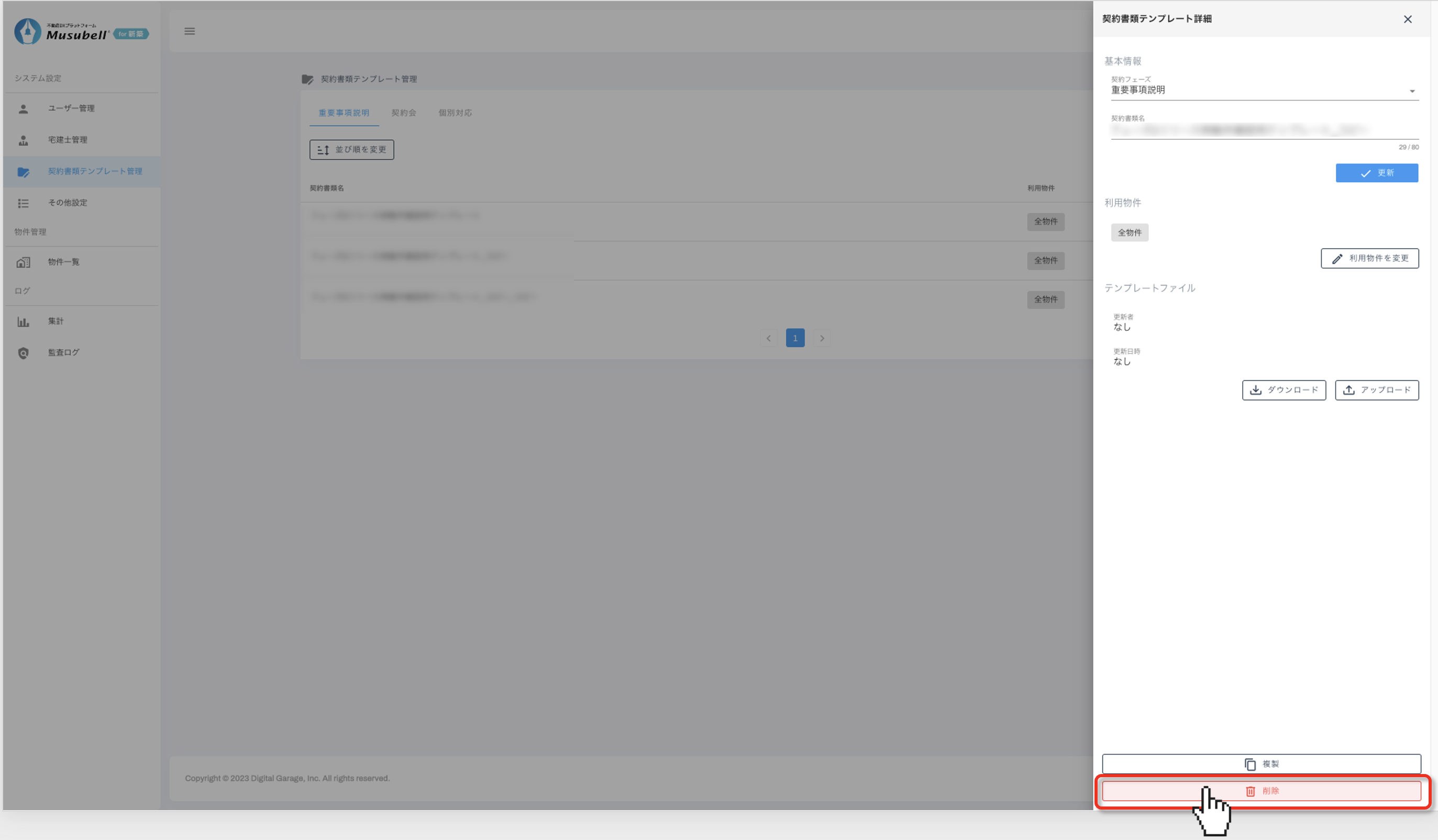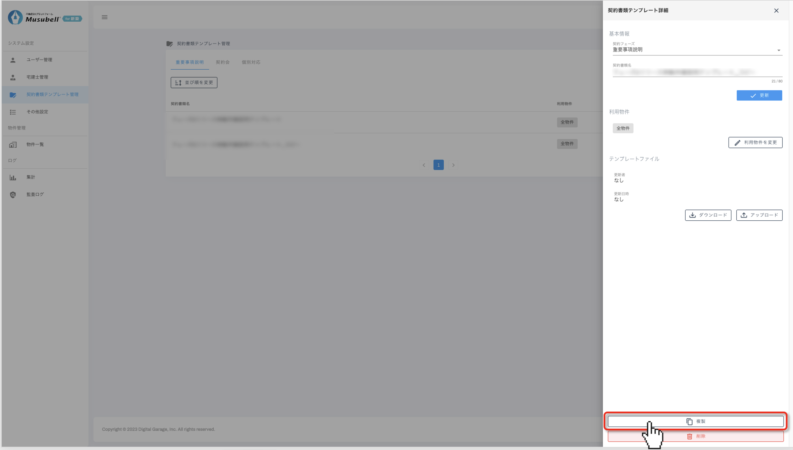 契約書類テンプレートは、一度削除してしまうと復元することができません。そのためテンプレートを変更する際には、まず複製したファイルに変更を加えてから、古い内容のファイルを削除する方法をお勧めします。