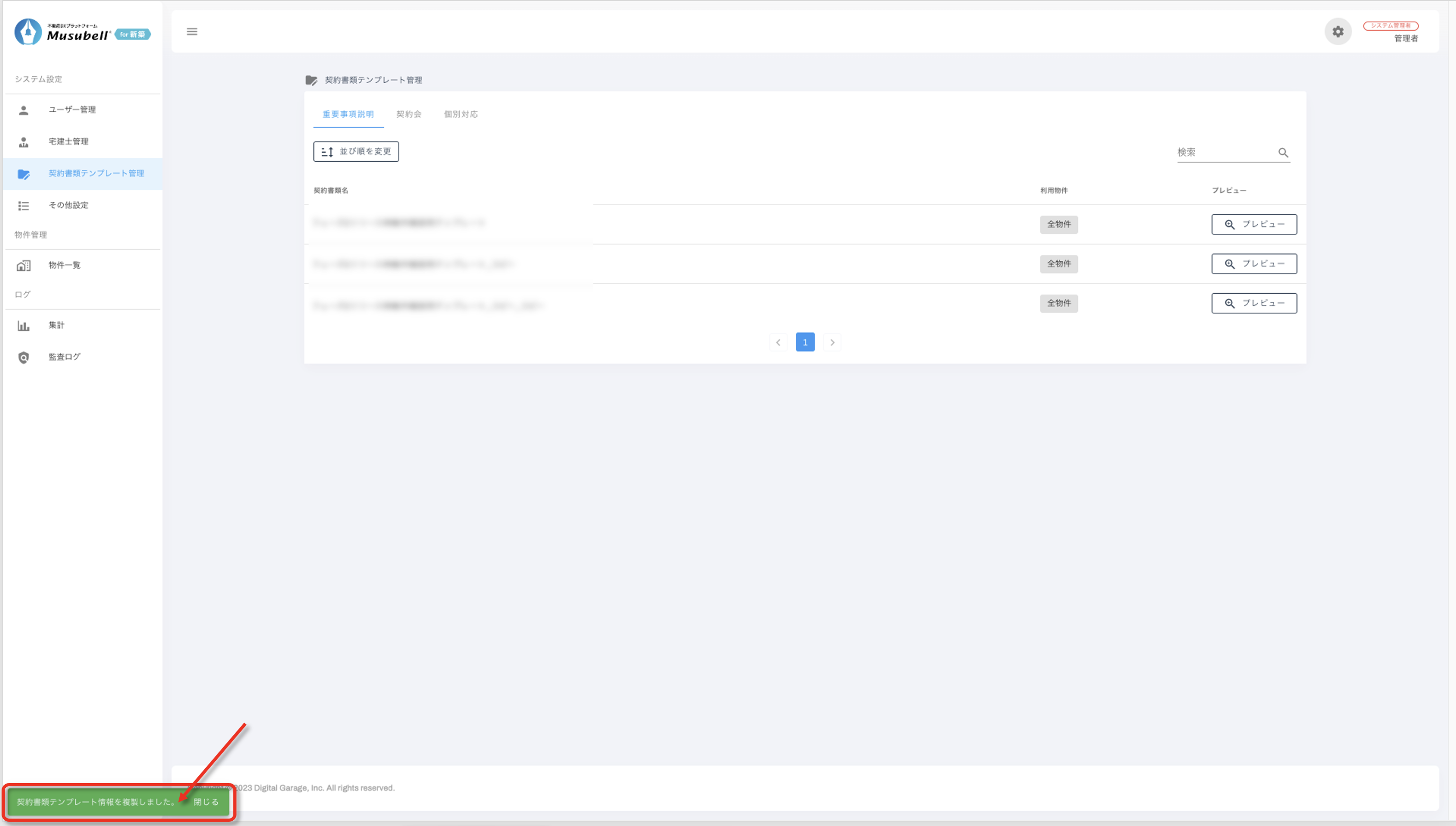 [契約書類テンプレート管理]から複製したいテンプレートをクリックします。