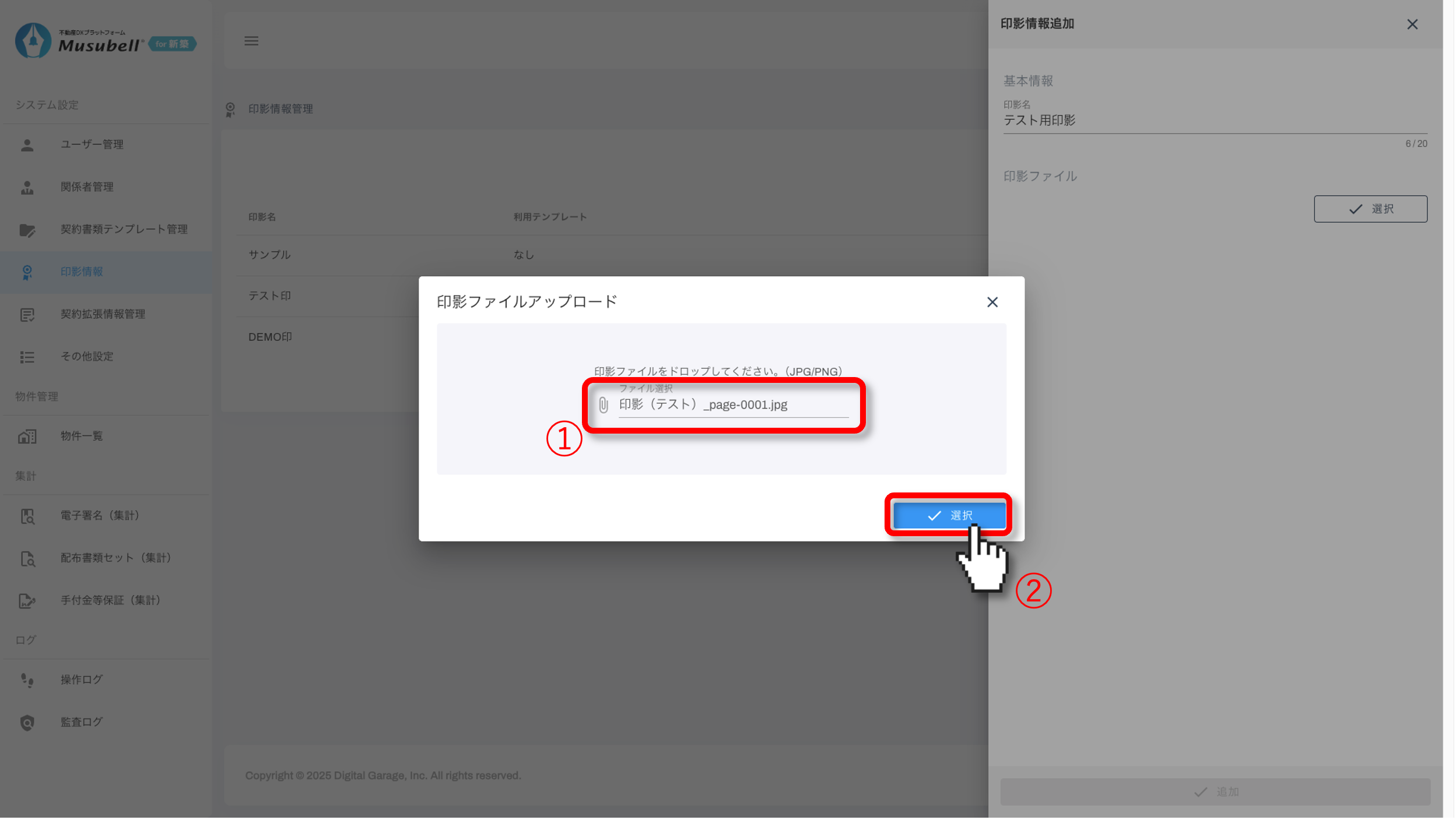 ① 印影のファイルを選択またはドラッグ&ドロップします。