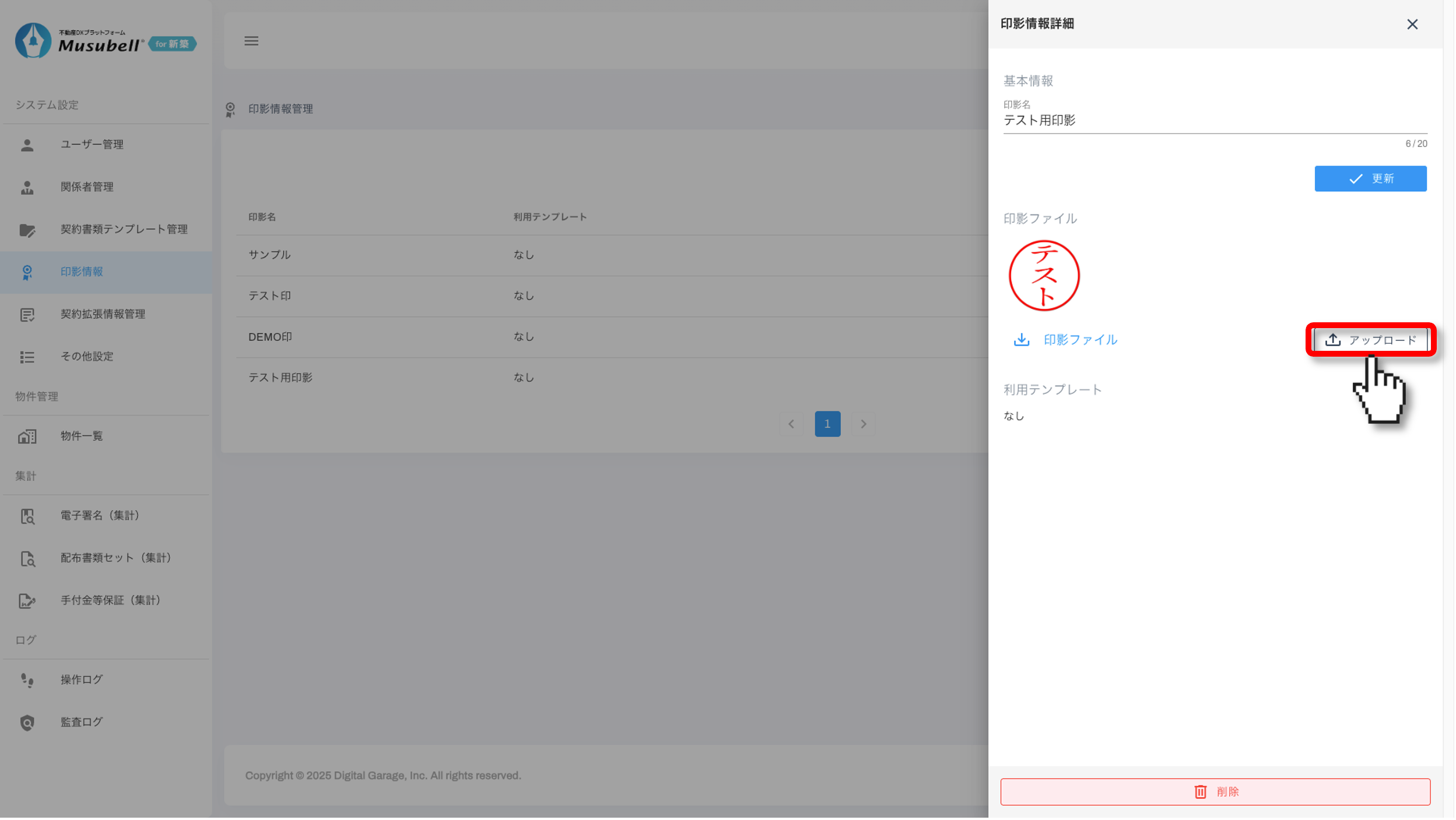 左下に「印影ファイルをアップロードしました」と表示されたら、変更完了です。
