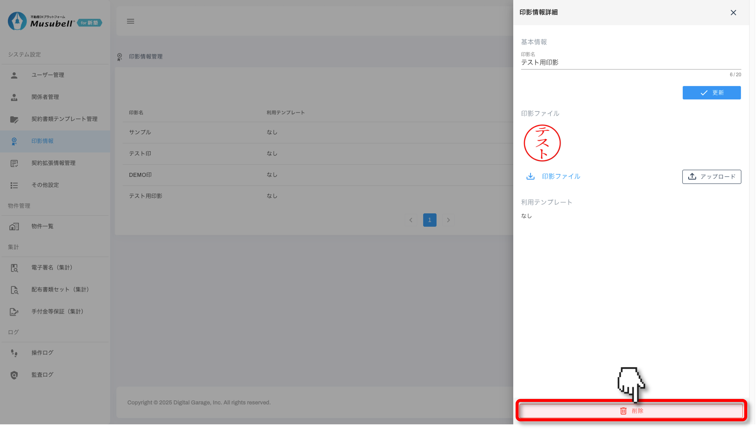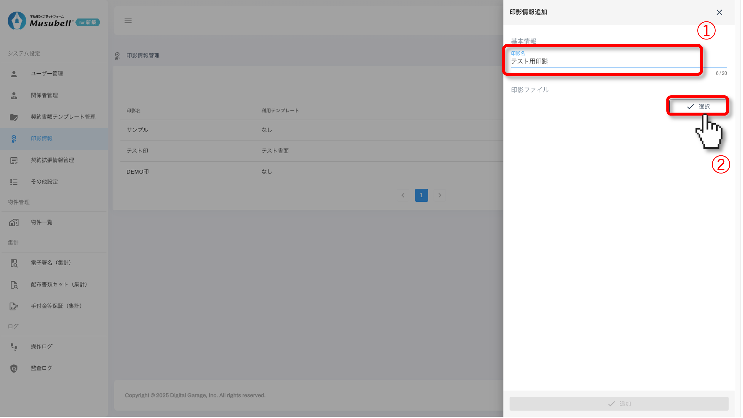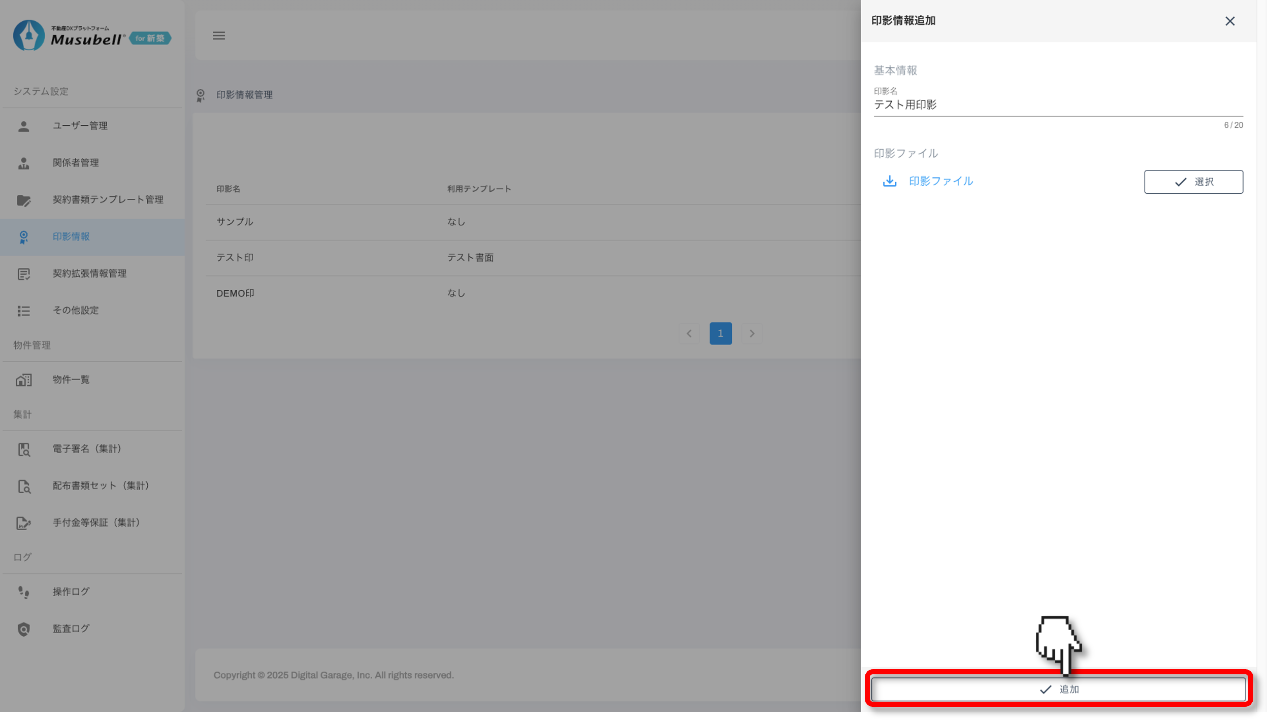 ▶︎続けてテンプレートに印影を設定する場合は[こちら]