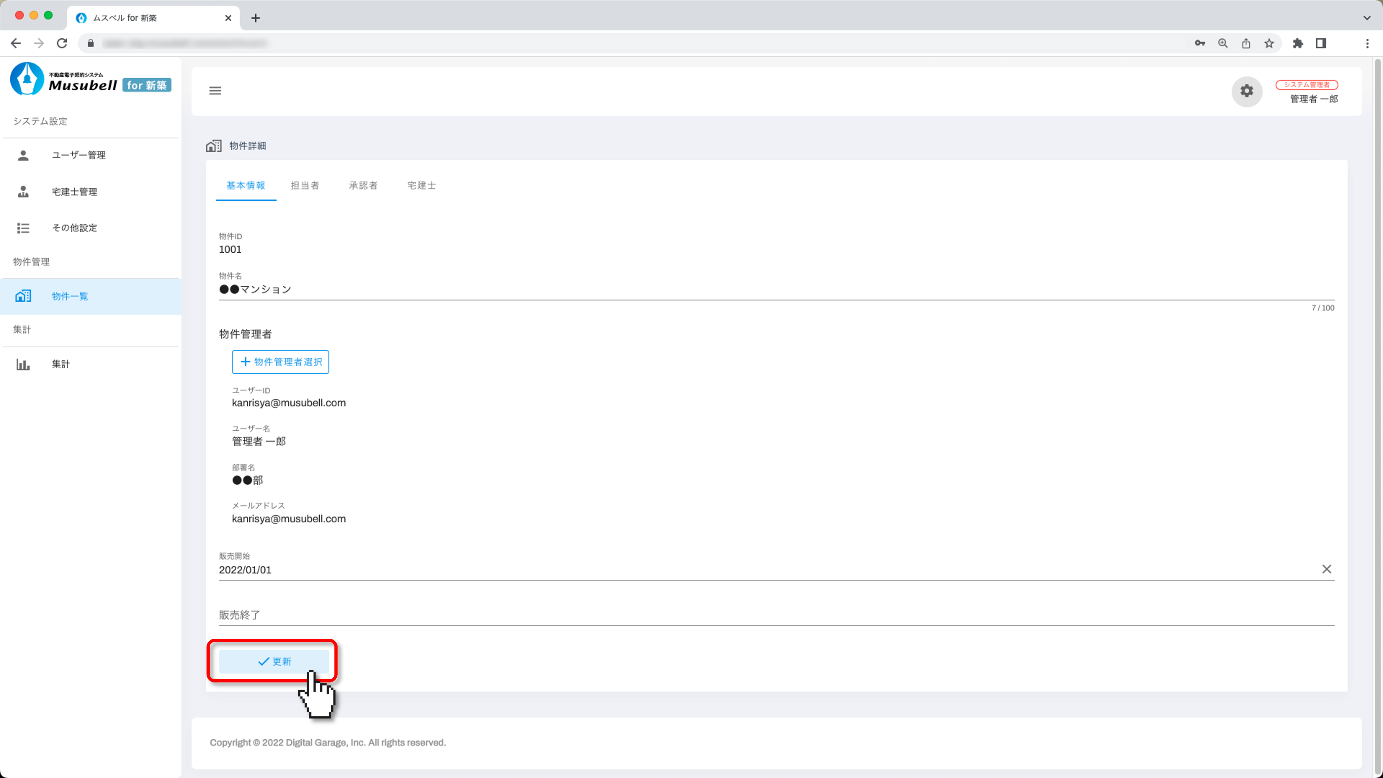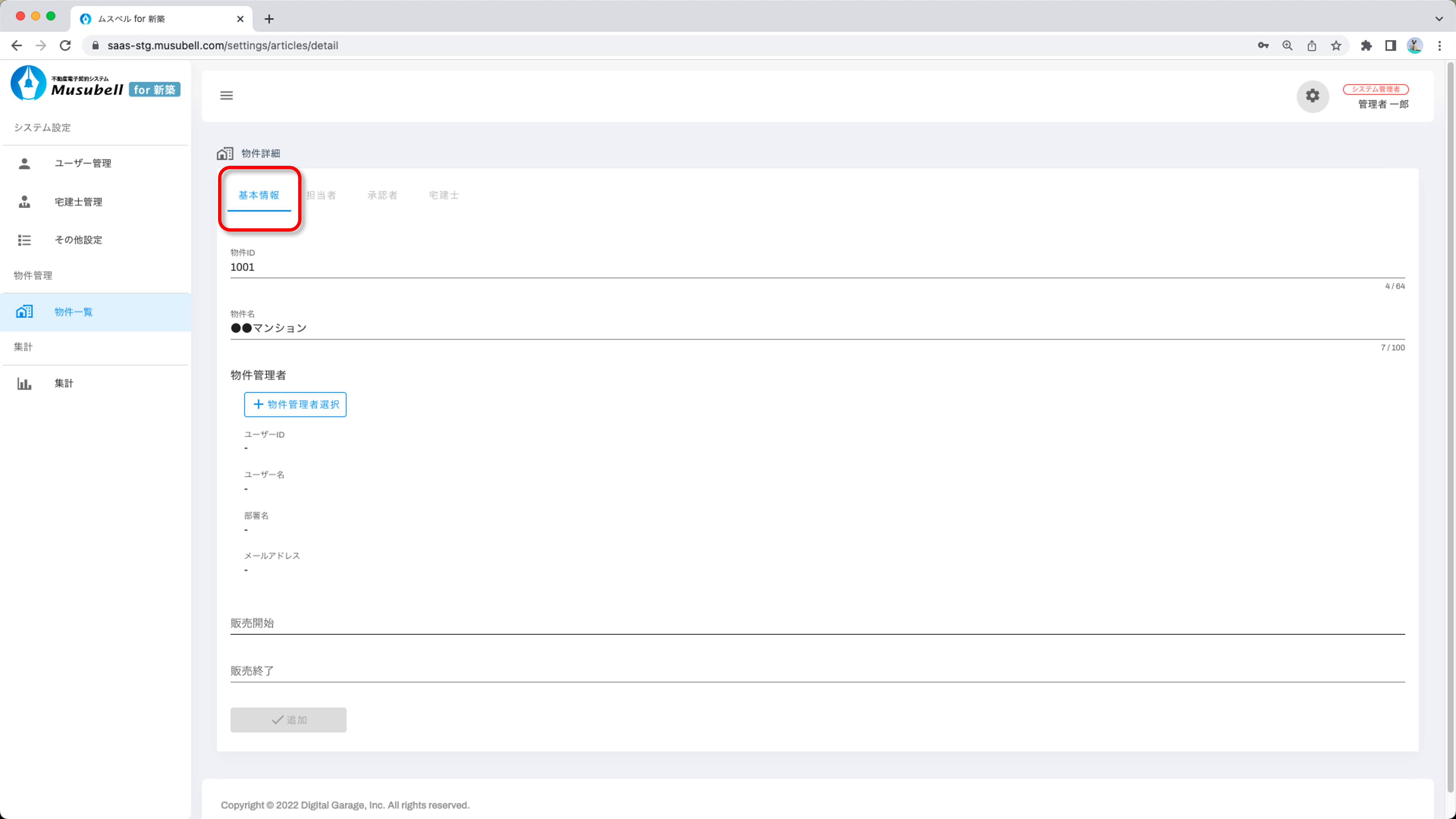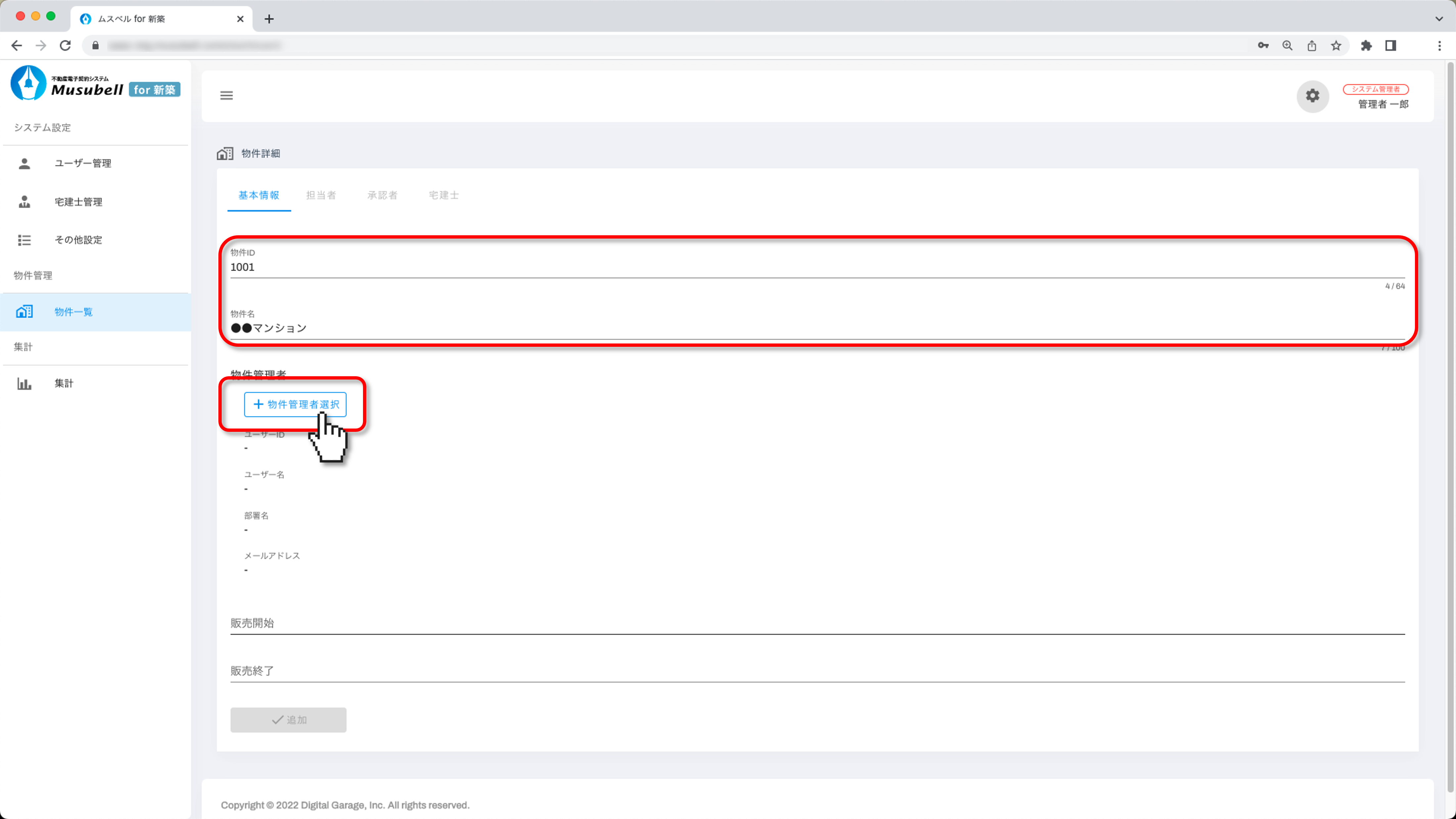 Musubellに新しい物件を追加し、基本情報や物件管理者を設定する手順をご案内します。